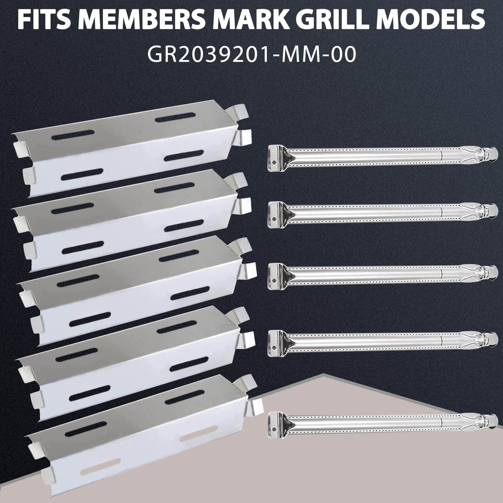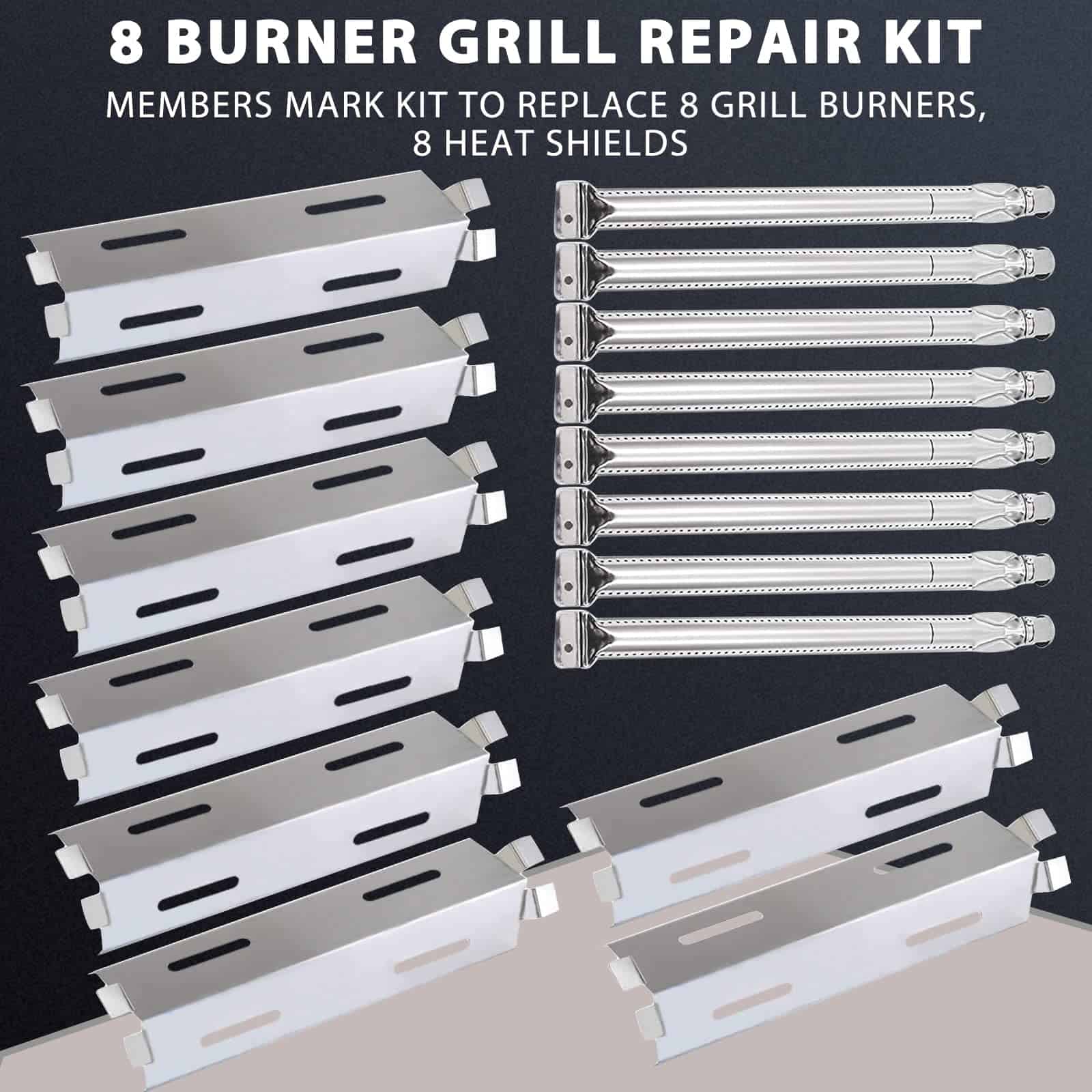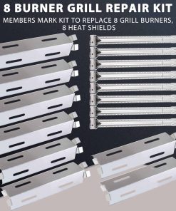 Renueva tu parrilla de gas members mark gr2039201-mm-00 con estos repuestos para parrilla. Refresca la apariencia y rendimiento de tus piezas, para mejorar la vida útil de tu parrilla members mark. El paquete consiste en 8 tubos quemadores de acero inoxidable, 8 placas térmicas de acero inoxidable.