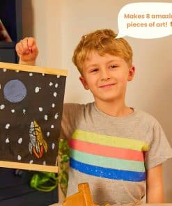 El kit de pintura definitivo para los pequeños artistas. En este kit de manualidades, los niños encontrarán todo lo necesario para pintar ocho increíbles obras de arte. ¡Tendrán su propia colección de pinturas para exhibir con orgullo en su habitación (¡o deberíamos decir galería!).