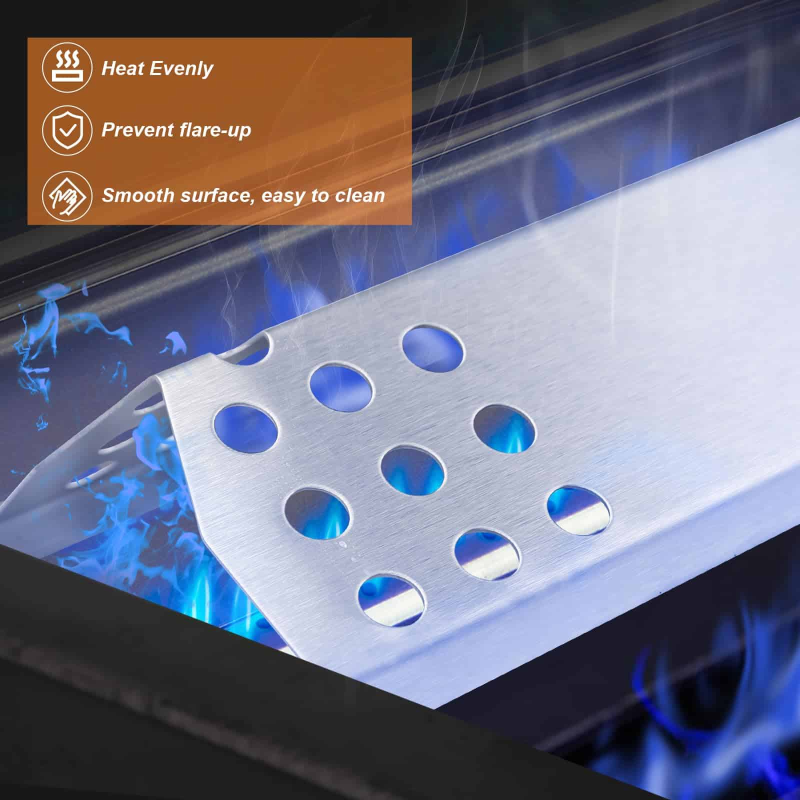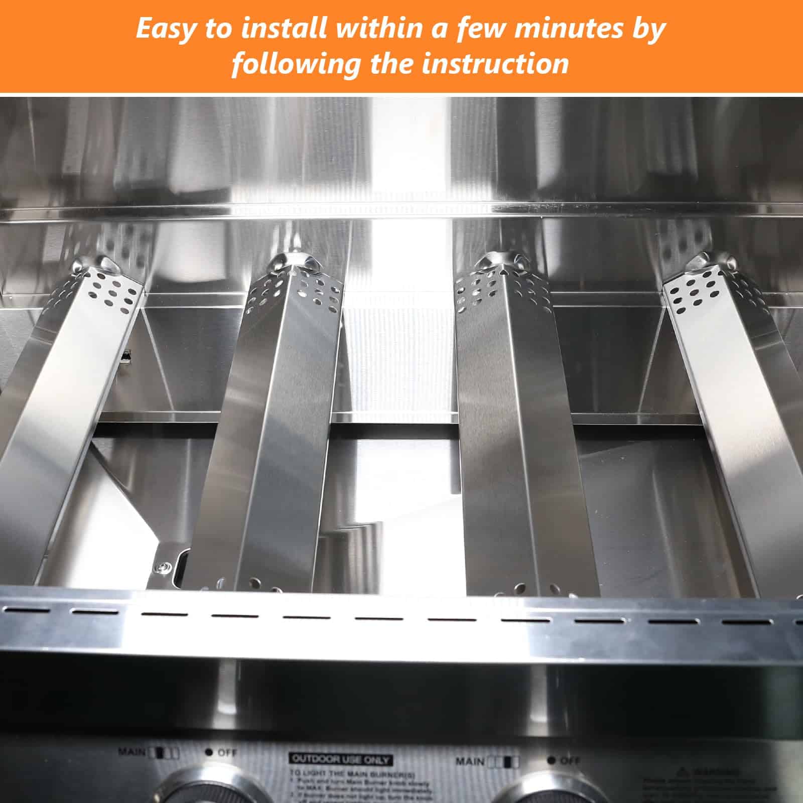 Pieza de Repuesto para Parrilla – Kit de Placa de Calor y Quemador es perfecto para reemplazar las piezas desgastadas de su parrilla Monument. Este kit incluye 4 placas de calor, 4 tubos quemadores, 4 cables de ignición y un paquete de tornillos para una fácil instalación. Fabricado con acero inoxidable real, este kit garantiza un uso duradero y una excelente calidad de cocción. No solo hace que su parrilla parezca nueva, sino que también asegura que sus comidas se cocinen de manera uniforme. Fácil de limpiar, solo necesita un cepillo para parrilla y agua con jabón. No espere más y renueve su parrilla con este Kit de Placa de Calor y Quemador.
