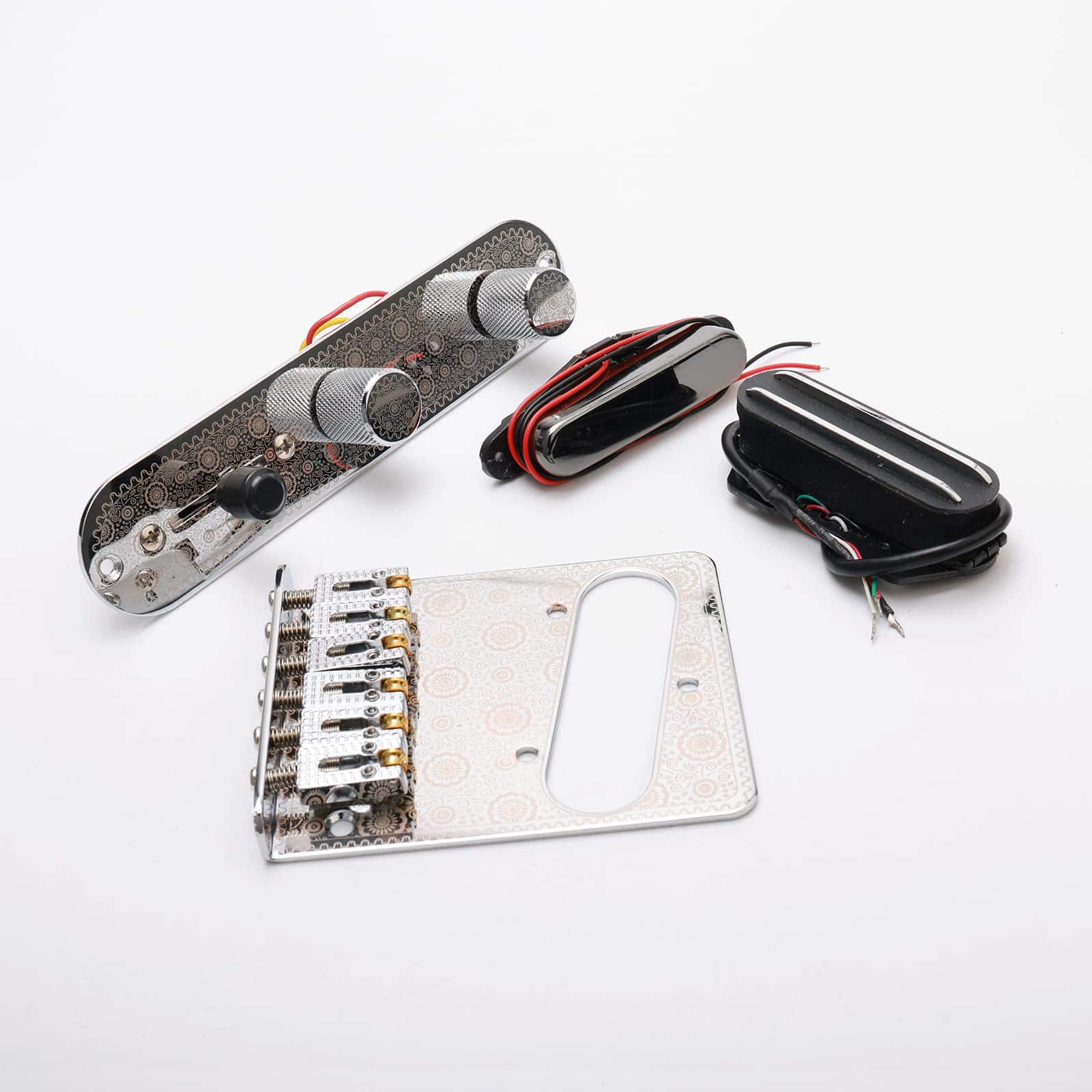 Características: 1. Interruptor de tres vías, incluyendo perilla de control de volumen y tono. 2. Placa de circuito de control de metal cromado, difícil de dañar. 3. Placa de puente con diseño floral. 4. Nuestra placa de circuito de control es una buena pieza de repuesto para bricolaje. 5. Especialmente diseñado para guitarra eléctrica. Especificación: Material: Metal Color: Plata Tamaño de la placa de control: Aprox. 160mm x 34.5mm Tamaño de la placa del puente: 81mm x 99mm Cantidad: 1 juego El paquete incluye: 1 Placa de Control de Guitarra 1 Placa de Puente 1 Pastilla de Mástil 1 Pastilla de Puente