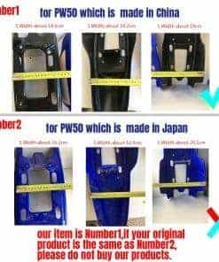 Kit de Plástico Completo de Guardabarros y Tanque de Gasolina para Yamaha PW50 PY50 PW 50 Peewee50 Azul Modelos Compatibles: La mayoría de Yamaha PW50 y PY50 excepto el año 2006. Descripción del Producto: Este es un kit de plástico para carenado completamente nuevo Color: AZUL Componentes: Guardabarros delantero, guardabarros trasero, placas laterales del tanque de gasolina, conjunto del tanque de gasolina, tubo de ventilación y montaje del asiento. Por favor, tenga en cuenta: 1. Debido a la diferencia de luz y pantalla, el color del artículo puede ser ligeramente diferente al de las imágenes. 2. Todas las dimensiones se miden a mano, puede haber pequeñas desviaciones. 3. Este es un artículo de reemplazo del mercado secundario pero no genuino. 4. Todas las aplicaciones indicadas en esta publicación son solo de referencia, la parte en venta solo reemplaza los números OEM relevantes. Si no está 100% seguro de que es lo que necesita, por favor, averigüe el modelo de su motor, el número de serie y póngase en contacto con nuestro servicio de atención al cliente. Somos un reemplazo para las partes. Nota: 1. El producto solo es adecuado para modelos de 1981 a 2014. 2. Los modelos PW50 de 1982, 1993, 1997, 2001, 2002, 2006, 2007 pueden no encajar completamente con estas partes. Puede requerir alguna modificación. 3. Por favor, asegúrese de que su vehículo pw50 sea fabricado en China y sea del mismo tamaño que en la imagen, si no está seguro, por favor, póngase en contacto con el servicio de atención al cliente primero antes de ordenar.