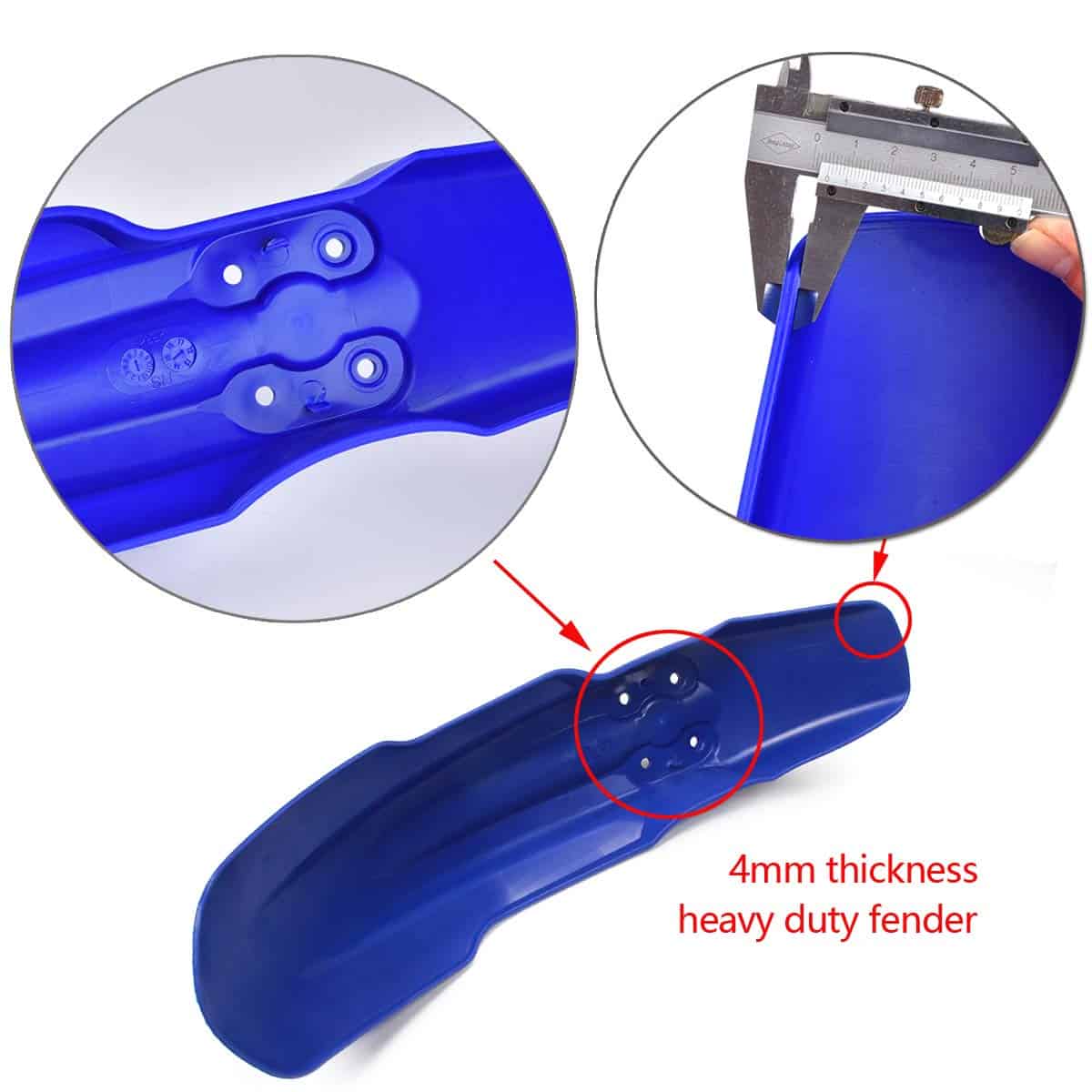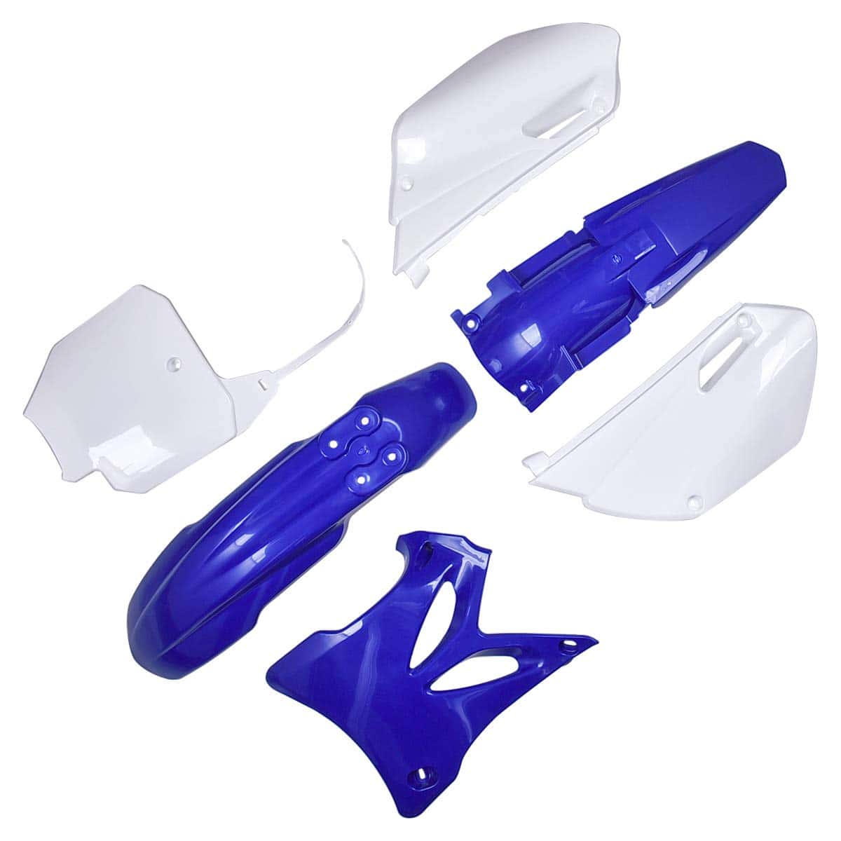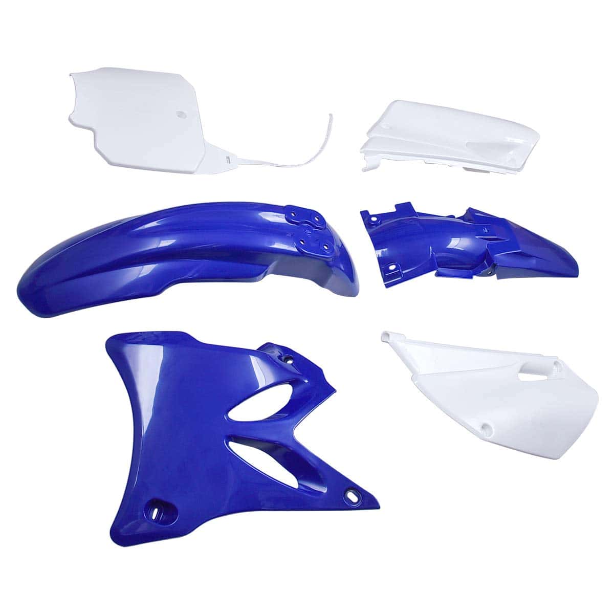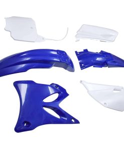 Kit de carrocería de posventa para YZ85 de 2002 a 2014 o de 2015 a 2018. El kit está hecho de material nuevo y de mayor espesor pero más suave, resistente y duradero. Incluye plástico para el guardabarros delantero, trasero, paneles laterales y protectores de radiador, para vestir por completo tu moto y tenerla lista para rodar. Color: Azul y Blanco. Material: Plástico NUEVO, no utilizamos materiales reciclados baratos. (El guardabarros delantero no es igual al original, se necesita una modificación para que funcione en el chasis original). Incluye: 1 juego de carenados como en las imágenes. La instrucción de instalación NO está incluida.