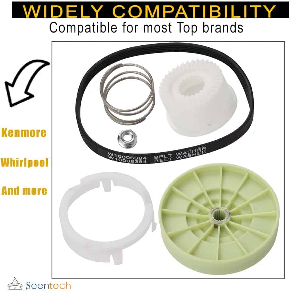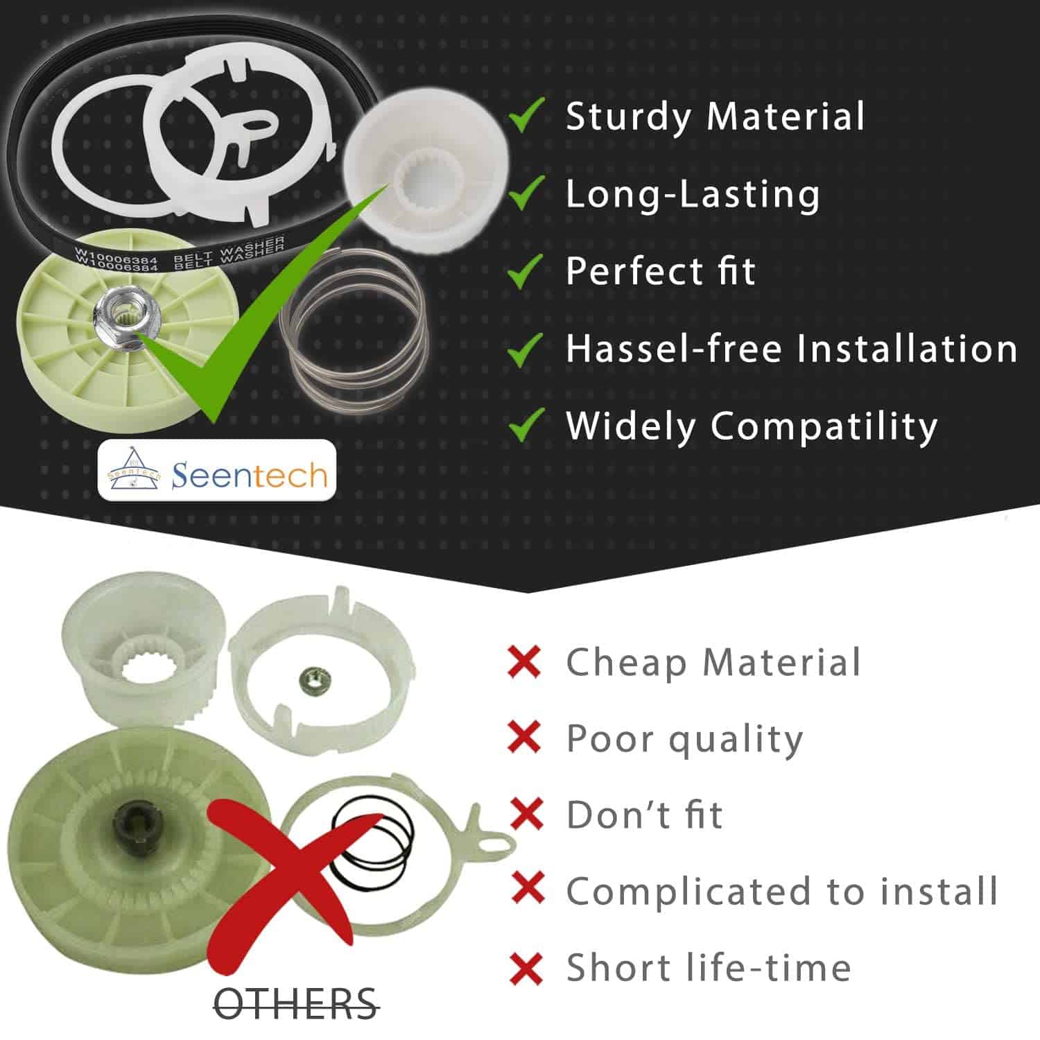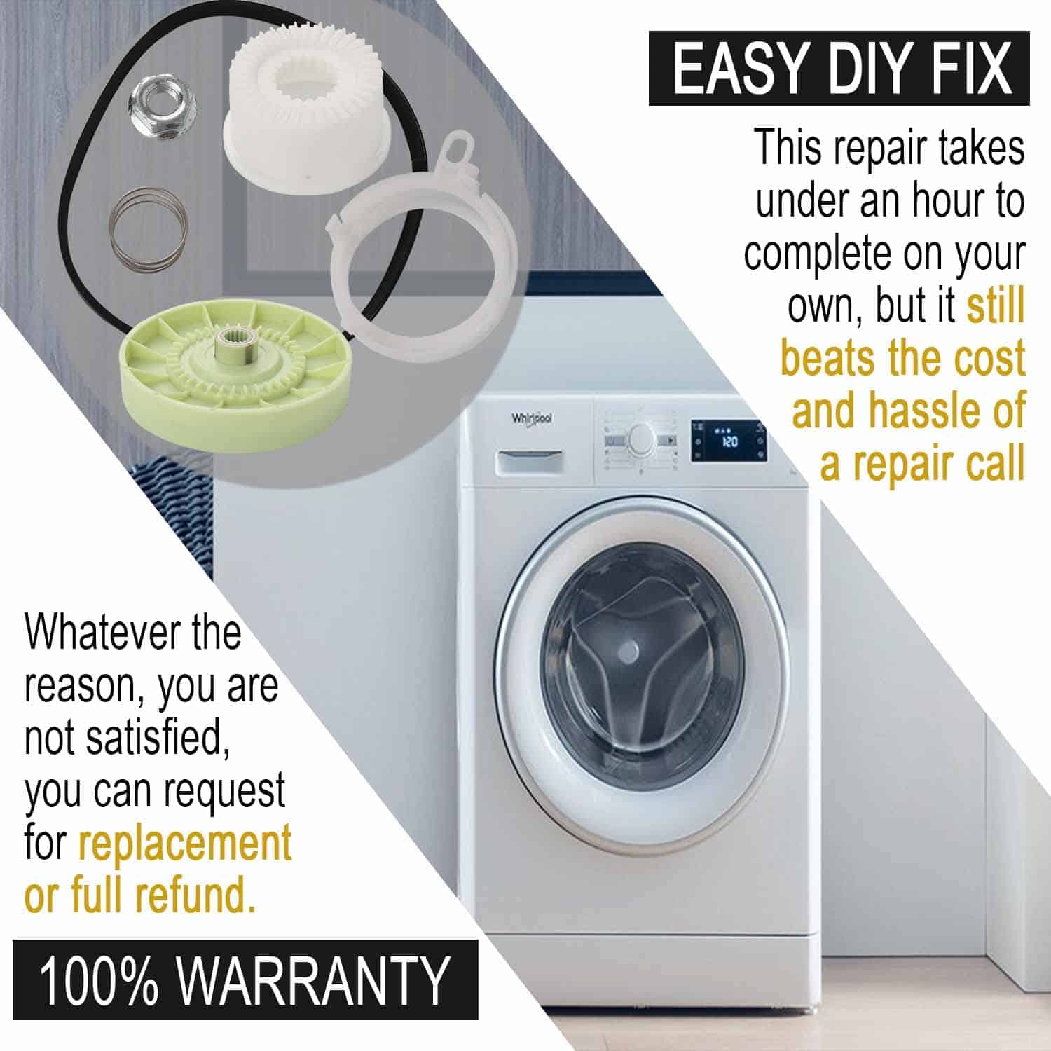 Kit de Polea de Embrague W10721967 y Correa de Transmisión W10006384 – ¡Hazlo tú mismo! No necesitas un experto para reemplazarlo, compatible con marcas como Whirlpool, Maytag, Kenmore y Amana. Material de alta calidad y probado por el fabricante para un rendimiento efectivo y duradero. Soluciona síntomas como ruido, falta de agitación, no centrifuga, centrifuga lentamente. Garantía de devolución de dinero de 30 días, si no estás satisfecho, te ofrecemos reemplazo o reembolso completo.