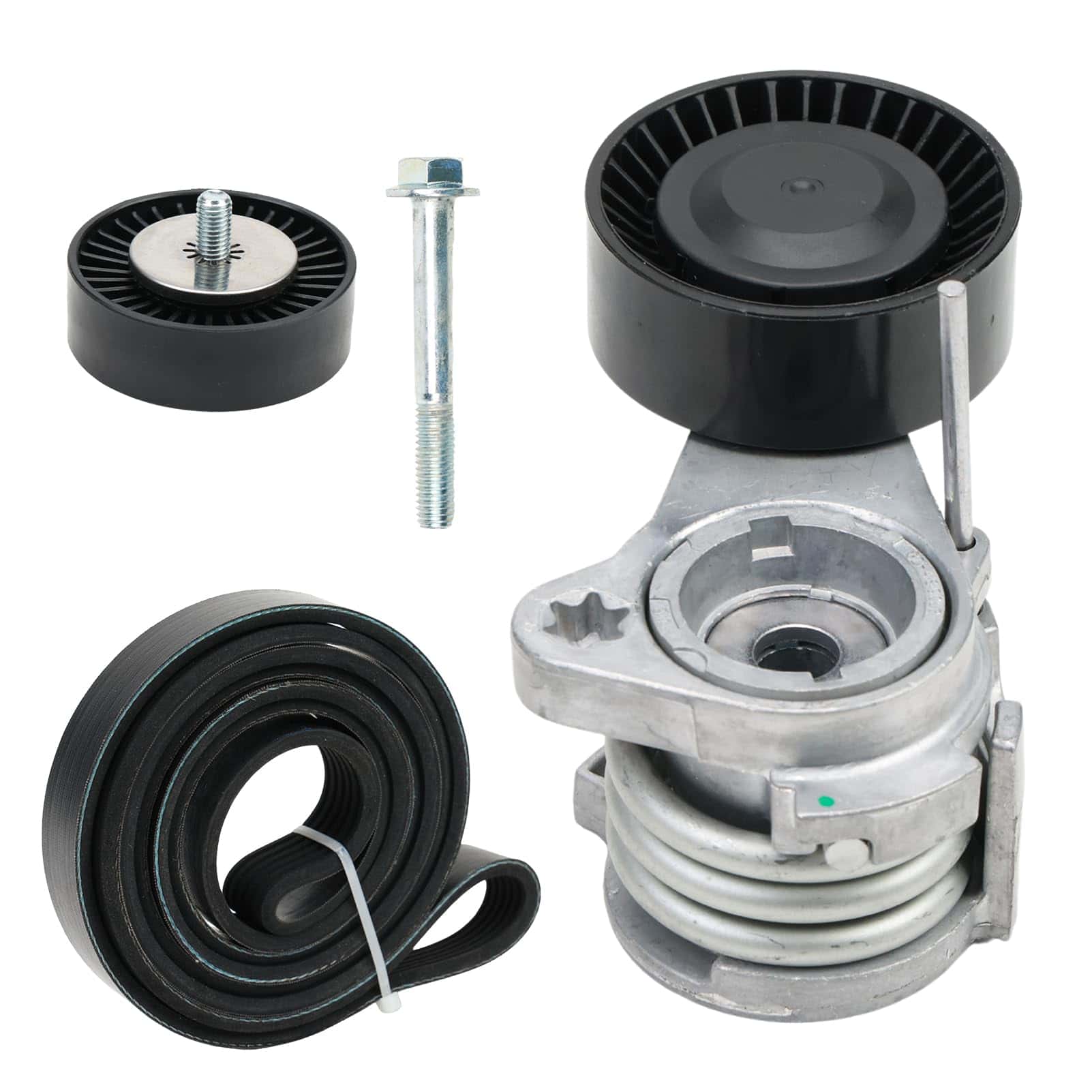 El kit de polea de tensor de correa de transmisión es adecuado para varios modelos de BMW. Incluye un tensor de correa, una polea tensora, una correa de transmisión y un perno. La tensión apropiada de la correa puede garantizar una transmisión de potencia estable, permitiendo que la potencia del motor se transmita de manera efectiva a varios accesorios (como generadores, compresores de aire acondicionado, bombas de agua, etc.) a través de la correa, manteniendo el funcionamiento normal de estos componentes y asegurando una eficiencia de transmisión estable y un rendimiento de trabajo óptimo. Asegúrese de verificar la compatibilidad de su modelo de coche y el número de pieza original con nuestros productos antes de realizar la compra.