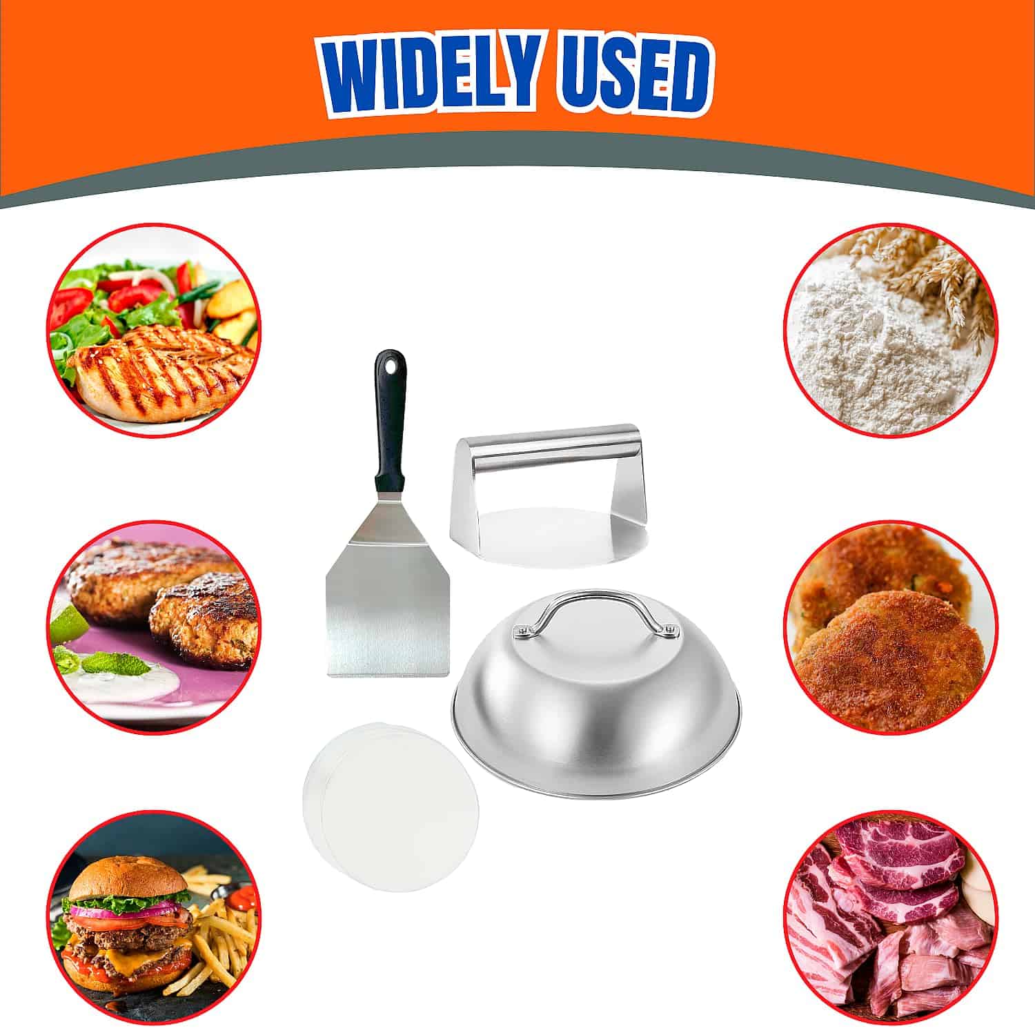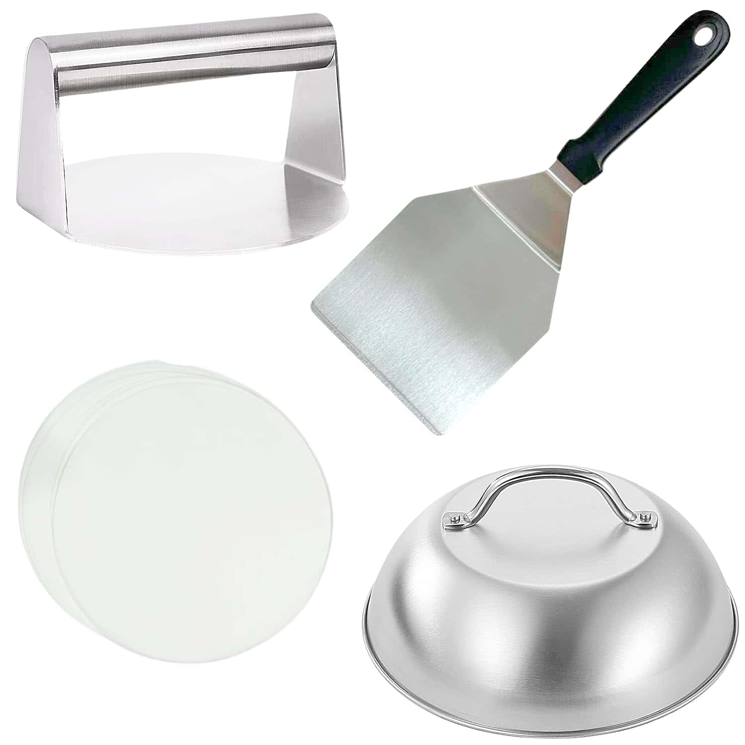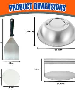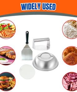 Observa cómo tu queso se derrite a la perfección pegajosa con nuestra cúpula de fusión de queso para hamburguesas redonda. Esta herramienta de tapa culinaria para cocinar hamburguesas crea un ambiente vaporoso que encapsula tu hamburguesa, asegurando una fusión uniforme para una experiencia de queso que no tiene nada que envidiarle a lo divino. Eleva tu juego de queso con nuestra cúpula para vaporizar hamburguesas. Di adiós a la cocina desordenada y hola a la perfección sin complicaciones con nuestro set de 50 discos separadores de hamburguesa. Estos papeles envolventes antiadherentes para hamburguesas evitan que tus hamburguesas se peguen a la prensa, haciendo que la limpieza sea pan comido y dejándote más tiempo para saborear los sabores de tus deliciosas creaciones con esta prensa para hamburguesas. Sorprende al amante de la comida en tu vida con el regalo de un sabor excepcional. Esta prensa de hamburguesas con papel encerado, tapas de acero inoxidable para hamburguesas y campanas de hamburguesas con asas para hamburguesas de queso Barbacoa Steak es el regalo perfecto para cumpleaños, vacaciones o cualquier ocasión que requiera una celebración chisporroteante. Este juego de papeles para hamburguesas, espátula de volteo de hamburguesa, cúpula de fusión de queso y prensa de hamburguesas promete llevar tu juego de hamburguesas a nuevas alturas. ¡Ordena ahora y comienza a crear obras maestras irresistibles en la comodidad de tu cocina!