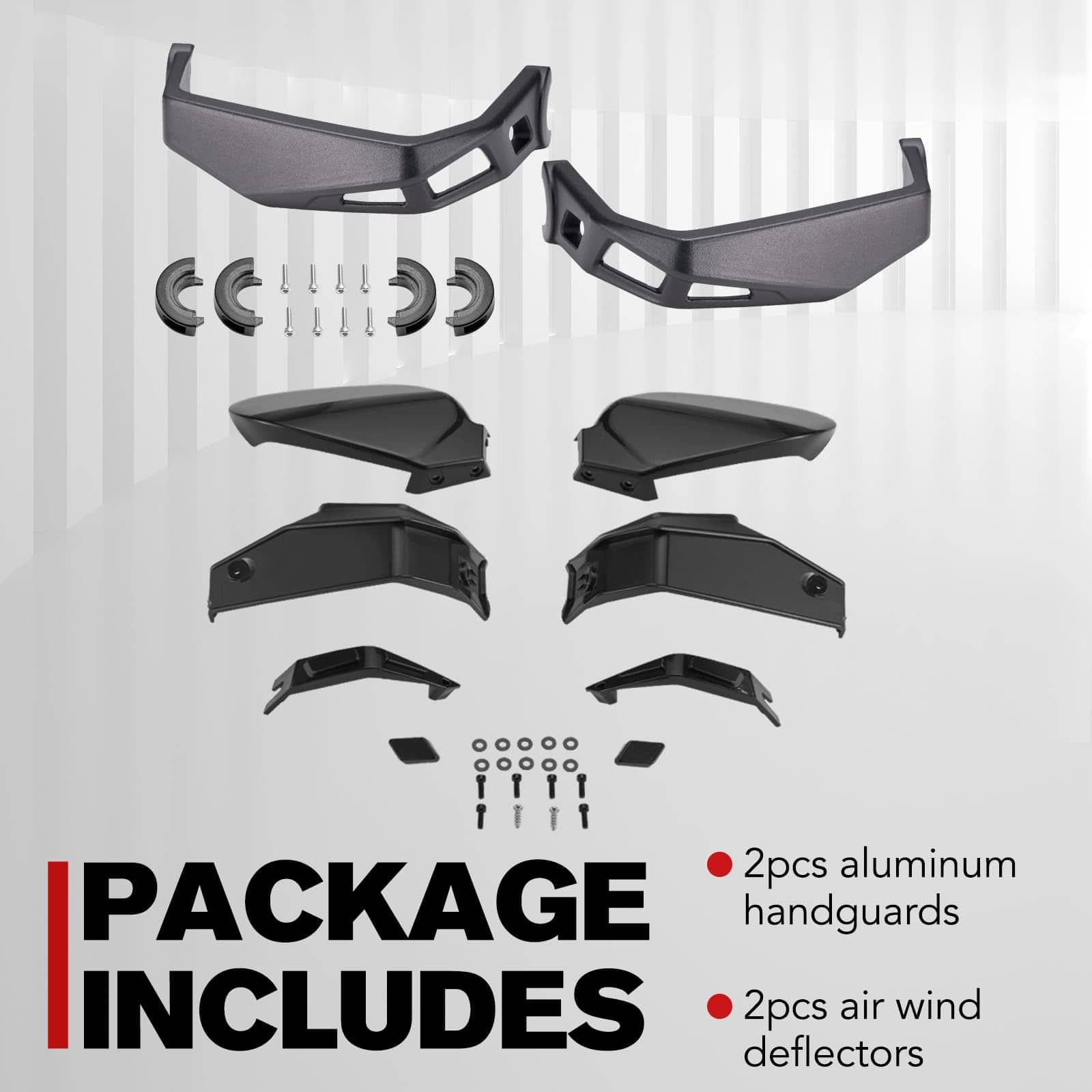5. FÁCIL INSTALACIÓN: Fácil de instalar, no se requiere perforación. El paquete incluye 1 juego de protectores de manos de aluminio negro y 1 juego de deflectores de aire negro para Can Am Ryker Todos los Modelos.