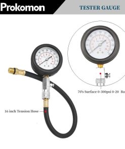 Los kits de prueba de compresión de motor de gasolina Prokomon se utilizan para diagnosticar y medir la presión del cilindro en motores de gasolina. Con un medidor de presión de hasta 300 PSI o 20 BAR, este kit incluye una variedad de adaptadores y conectores para adaptarse a diferentes tamaños de cilindros y bujías. La precisión de las mediciones ayudará a identificar problemas comunes como válvulas atascadas, acumulación de carbono, cabezales de cilindros agrietados y más. El kit viene con un medidor de presión con hebilla de resorte, adaptadores de diferentes tamaños, varillas de extensión de metal y una manguera de extensión para mayor comodidad. Perfecto para su uso en motocicletas, cortadoras de césped, autos, camiones, vehículos todo terreno y más, este kit de prueba de compresión de motor de gasolina es una herramienta esencial para cualquier mecánico o entusiasta del motor.