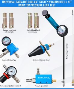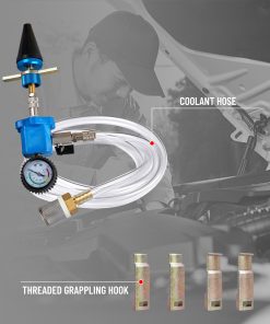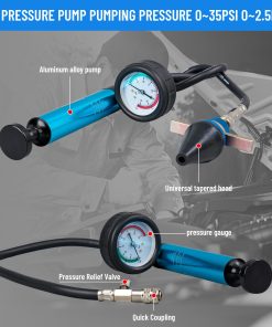 Este kit de prueba de presión del radiador te permite reemplazar el refrigerante y probar el sistema de enfriamiento de tu vehículo (incluyendo el radiador, el núcleo del calentador y la tapa del radiador) en una manera simple y directa. Viene con un adaptador de goma universal y tapones de aire de estilo americano y europeo, compatible con casi todos los vehículos en el mercado.