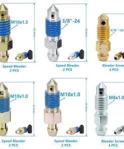 Kit de purgadores de frenos de velocidad de 6 tamaños, 12 piezas y kit de surtido de tornillos de purga de frenos de 4 tamaños, 16 piezas (28 piezas). Especificación: