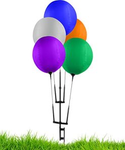 ¡Cinco veces el impacto de nuestro Kit de poste de jardín reutilizable! El uso de dos Brazos de racimo permite que este kit sostenga cinco Globos reutilizables a la vez. ¡Diseñado para usar en cualquier área con césped o paisajística! ¡Cada kit incluye un poste de aluminio resistente de 35″ de altura, dos Brazos de racimo de globos, Cinco Soportes de globos de fibra de vidrio y plástico reforzado de 30″ de altura, Cinco Clips Adaptadores de Globos, una pica de tierra de acero de 27″ de altura y cinco Globos reutilizables! La resistente pica de tierra de acero asegura que su poste no se voltee. Conveniente para usar su pie o un martillo para implantar la pica en el césped o tierra. El diseño único de bloqueo de muesca en giro permite que estos Soportes de Globos se ensamblen de forma segura y segura. La altura total (incluyendo un Globo reutilizable) es de 8 pies. Cada Brazo de racimo de globos tiene 11 1/2″ de ancho y sostiene dos Soportes de globos ¡Los tanques de helio para globos no son necesarios con este increíble kit de racimo de globos reutilizables!