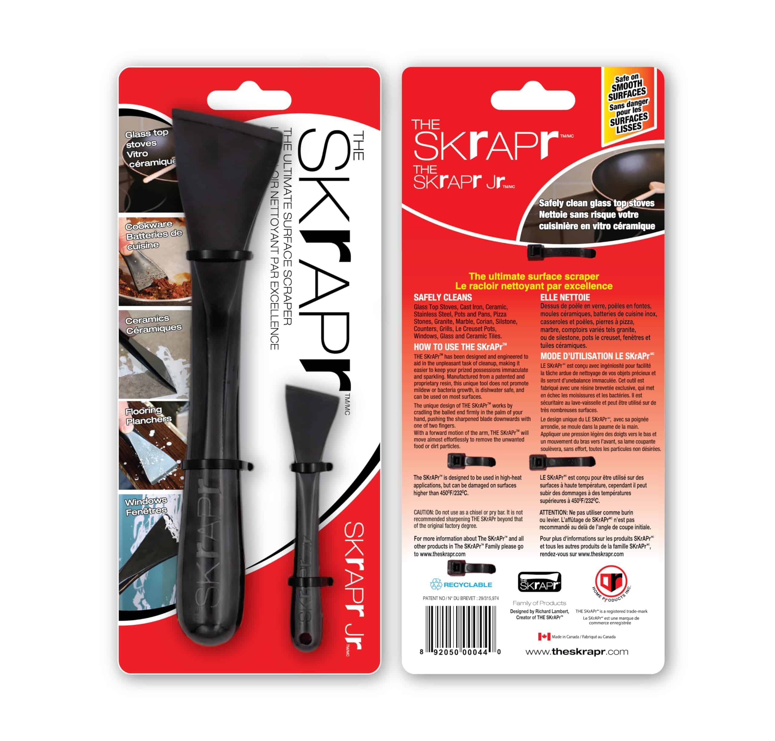 El Raspador ha sido diseñado para ayudarte con esas tareas de limpieza difíciles, facilitando el mantenimiento de tus posesiones inmaculadas. Este Kit Handy Home SKrAPr y SKrAPr Jr. incluye un raspador de 8″ y un raspador de 4″. Fabricados con una resina patentada, estas herramientas únicas no promueven el crecimiento de moho o bacterias y son aptas para lavavajillas. Se pueden usar en la mayoría de las superficies comunes, como estufas de vidrio, encimeras de cocina, hielo en parabrisas de autos, superficies de granito/mármol, ollas y sartenes, superficie cerámica, pisos de madera y parrillas interiores.