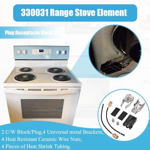 El Kit de Receptáculo de Elemento de Hornilla para Estufa incluye Bloque de Receptáculo, cables de alta temperatura, tuercas de cerámica, dos soportes metálicos diferentes para que coincidan con el antiguo, tubo termorretráctil. El Modelo 330031 2 Pack Universal Range Stove Element Plug Receptacle Block es fácil de instalar e incluye todo lo necesario para la instalación. Reemplaza números de parte como 330031, AP3075808, PS340571, EAP340571, PD00002360, 814399, 5303935058, etc. Compatible con marcas como Whirlpool, Roper, Caloric, Magic Chef, KitchenAid, Kenmore, Estate, Jenn-Air, Hoover.