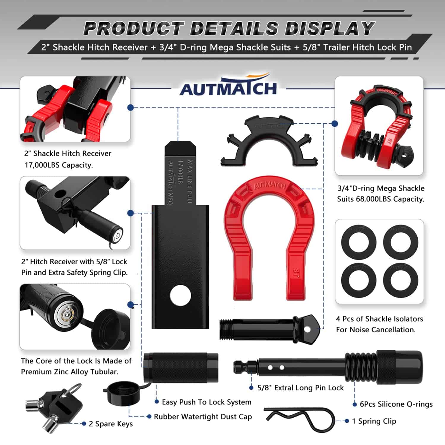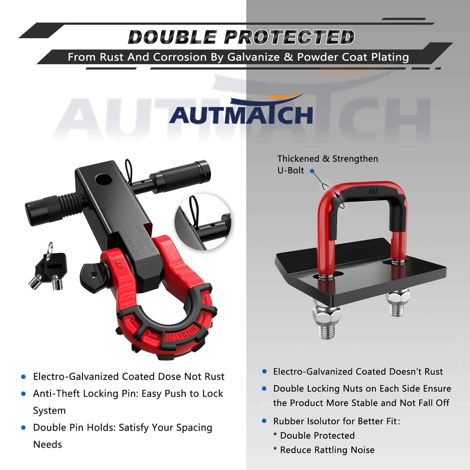 El Set de Receptor de Enganche Mega de AUTMATCH Ofrece una Potencia de Remolque Superior y un Mejor Agarre para Satisfacer Sus Necesidades de Recuperación de Vehículos y Acompañamiento para Sus Viajes. La Abrazadera de Enganche AUTMATCH está Construida con Acero Forjado de Alta Resistencia para Evitar el Balanceo, el Meneo, el Ruido y el Movimiento del Enganche en los Portabicicletas de Enganche, Portaequipajes de Carga y Otros Accesorios de Remolque de Enganche. Son una Combinación Perfecta. Nuestra Visión Era Crear una Marca de Exploración Valiente que se Alineara con Nuestras Creencias Principales, una Marca con la que Te Identificarás y te Unirás con Entusiasmo, Cambiando el Mundo que nos Rodea Ayudando a Apoyar una Gran Causa.