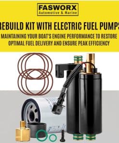 Kit de reconstrucción con bombas de combustible eléctricas para Volvo Penta. Este kit incluye una nueva bomba de combustible de baja presión, una nueva bomba de combustible de alta presión, un nuevo filtro de combustible y seis anillos tóricos nuevos. Compatible con los modelos 21608511, 21545138, 21397771, 3594444, 3861355, 3860210 y 23306461 de Volvo Penta. Ideal para la reparación y mantenimiento de tu sistema de combustible en los motores 4.3, 5.0 y 5.7 GXI.