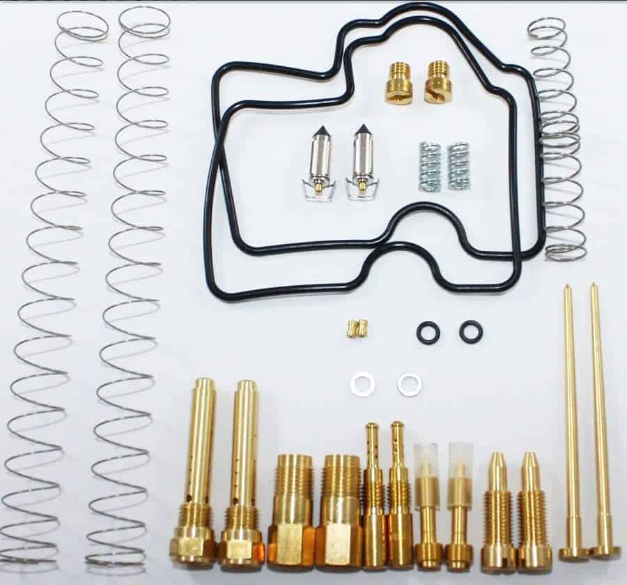 Este es un kit de reconstrucción de carburadores de calidad OEM con componentes mecanizados de precisión para los cuatro ATV Kawasaki KVF 650 Prairie 2002-2003, Kawasaki KVF 700 Prairie 2004-2006 y Kawasaki KVF 650 Brute Force 2005-2013. Viene con dos kits; uno para cada carburador. El kit incluye todas las juntas, anillos tóricos, resortes, jet principal, jet lento, aguja de flotador, etc., para una reconstrucción completa del carburador como se muestra en las fotos proporcionadas.