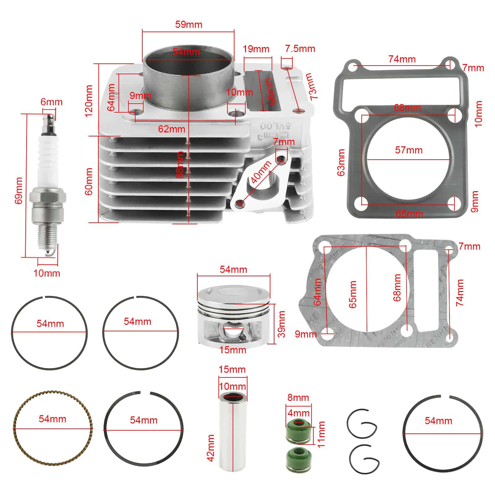 Kit de Reconstrucción de Cilindro Pistón Junta Anillo para 2000-2005 Yamaha TTR125 TTR125E TTR 125