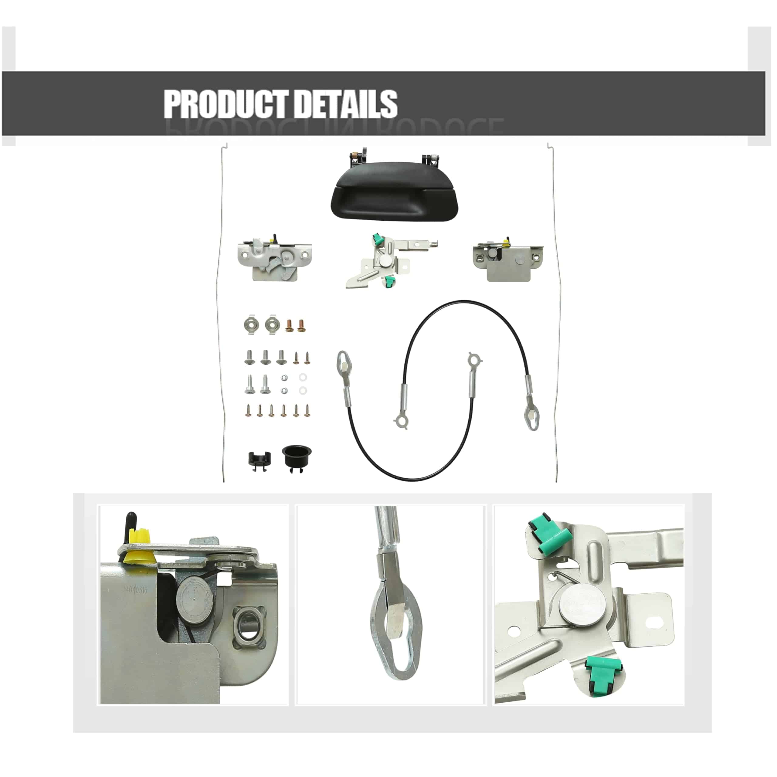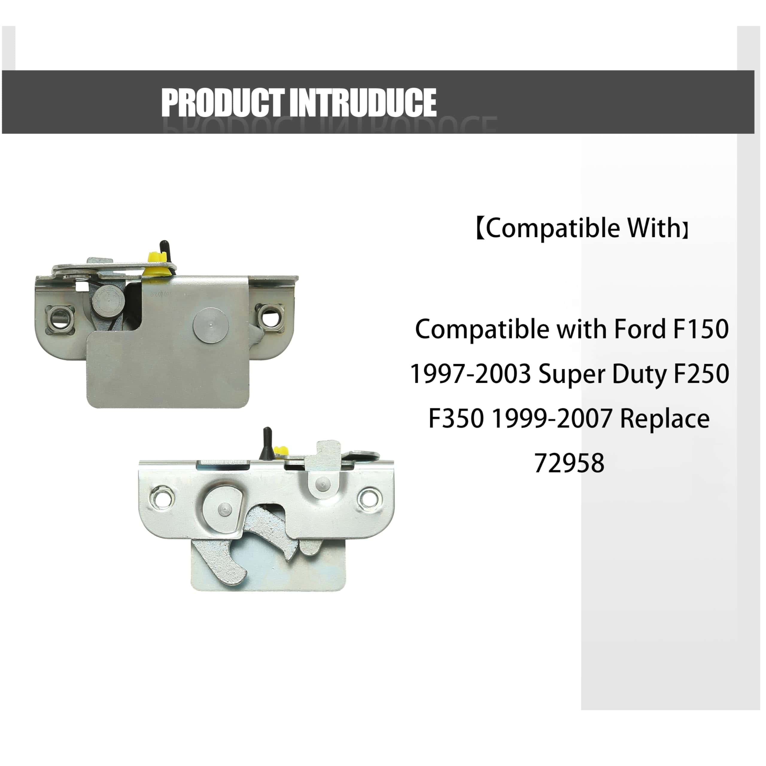 Compatible con Ford Super Duty F250 F350 1999-2007 y Ford F150 1997-2003. Reemplaza la parte número 72958. Este kit de reconstrucción de hardware de portón trasero incluye una manija, una traba de manija, trabas de portón, cables, enlaces de varilla, bujes, pernos y tornillos. Es 100% nuevo y perfecto para tu vehículo, siendo probado rigurosamente para asegurar la misma calidad que el producto OEM antes de salir de fábrica y una vida útil más larga. Además, si no estás satisfecho con tu compra, podemos proporcionarte 1 año de soporte de calidad para este producto.