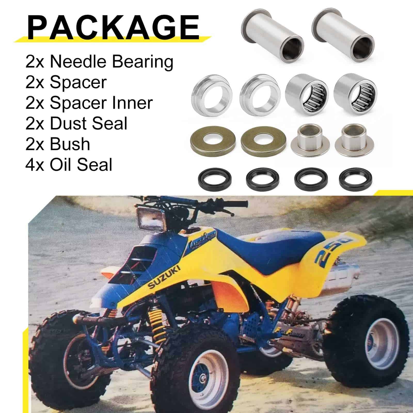 1. COMPATIBILIDAD DE PRECISIÓN: Compatible con Suzuki LT250R QuadRacer 1985-1992, LT500R QuadRacer 1987-1990. Nuestro cojinete de brazo oscilante asegura un ajuste perfecto para tu aventura.