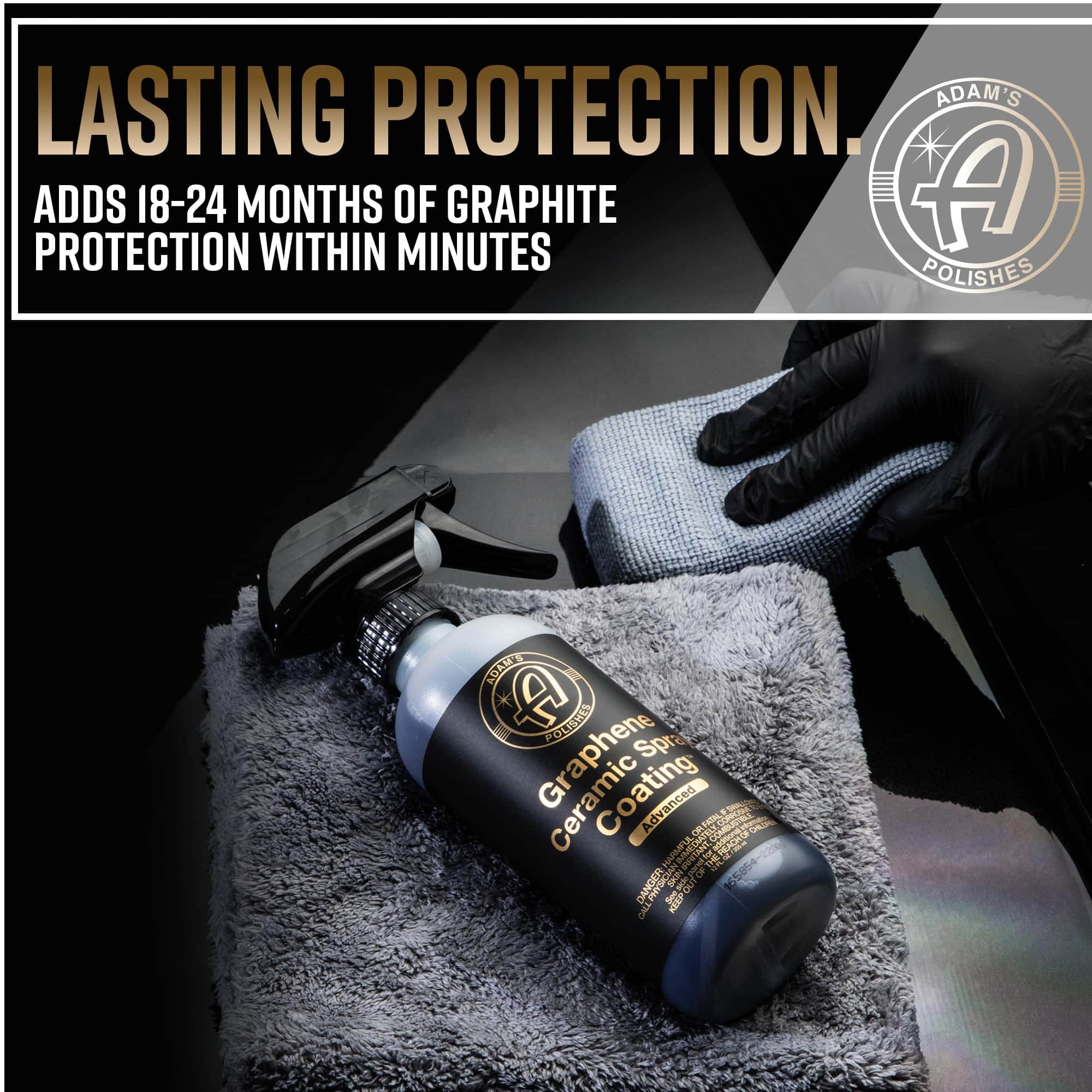 1. RECUBRIMIENTO DE CERÁMICA VERDADERO CON GRAFENO – En la industria del cuidado del automóvil, los recubrimientos cerámicos y la nanotecnología se han vuelto palabras de moda y estándares de la industria y aunque a veces son efectivos, estos no son verdaderos recubrimientos cerámicos. Son productos infundidos con sílice que se comportan como un recubrimiento. Adam’s ha creado la siguiente evolución de los recubrimientos cerámicos creando un recubrimiento de grafeno en aerosol legítimo.