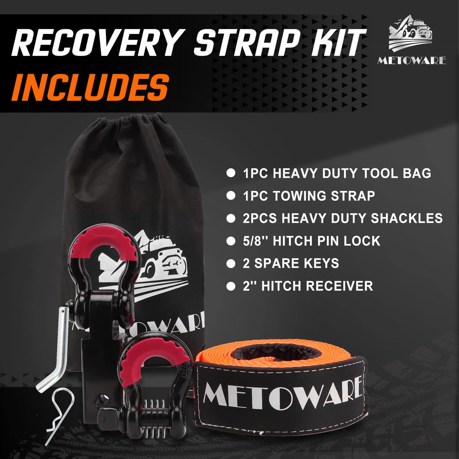 Kit de Recuperación METOWARE Heavy Duty Tow Strap – 3″ x
