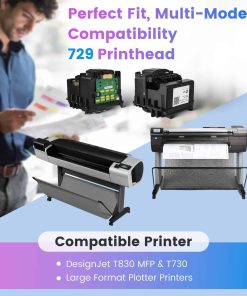 1. Modelos de impresora compatibles El cabezal de impresión 729 es compatible con las impresoras plotter de gran formato HP DesignJet T830 MFP y T730. Número de parte original del fabricante: F9J8A.