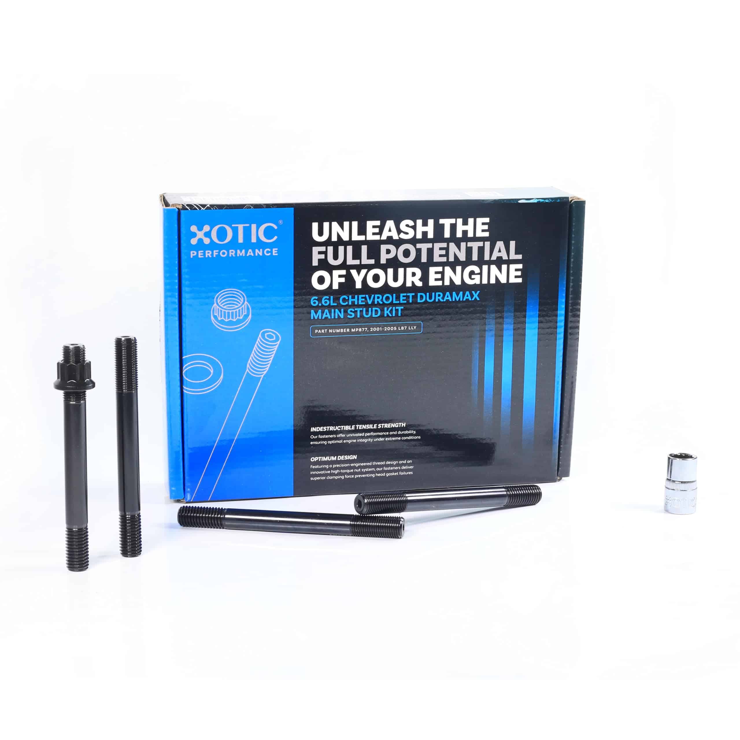 Kit de reemplazo de pernos principales para motores Chevrolet Duramax 6.6L 2001-2005 LB7 LLY. Fabricados en material XOTIC 7200, estos pernos principales ofrecen una resistencia a la tracción superior en comparación con el acero cromoly estándar 8740. Clasificados con una resistencia a la tracción de 220,000 psi, estos pernos proporcionan fuerzas de sujeción significativamente mejoradas, superando a los pernos estándar. Los pernos principales proporcionan un alineamiento mejorado de las tapas, reduciendo el riesgo de desplazamiento de las tapas bajo cargas extremas. A diferencia de los pernos, los pernos permanecen estacionarios, ofreciendo un mejor compromiso de rosca y longevidad. Los extremos roscados de los pernos facilitan una instalación más precisa. Incluye un manual de instrucciones detallado con diagramas para una configuración sin problemas. Kit completo con accesorios: 10x pernos principales M14, 10x tuercas, 10x arandelas, 10x pernos Torx M12, 1x llave Allen, 1x lubricante de montaje de sujetadores y 2x tomas todo lo necesario para una instalación sin complicaciones. Estos son pernos principales, no pernos de culata. Los pernos principales y de culata sirven para diferentes propósitos seleccionar el correcto es crucial. Para pernos de culata, busca más en nuestro catálogo.