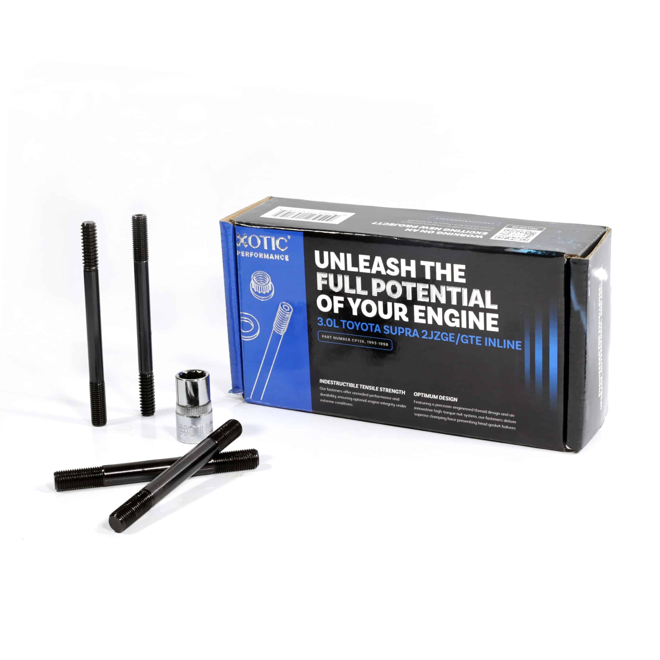 Con el Kit de reemplazo de pernos de cabeza de Xotic Performance®, puede mejorar el rendimiento y la confiabilidad de su motor Toyota Supra 2JZGE o GTE Inline del 1993 al 1998. Fabricado con material XOTIC 7200 de alta resistencia, estos pernos de cabeza tienen una resistencia a la tracción excepcional de 220,000 psi, lo que garantiza una sujeción segura de las culatas y previene la elevación de las mismas.