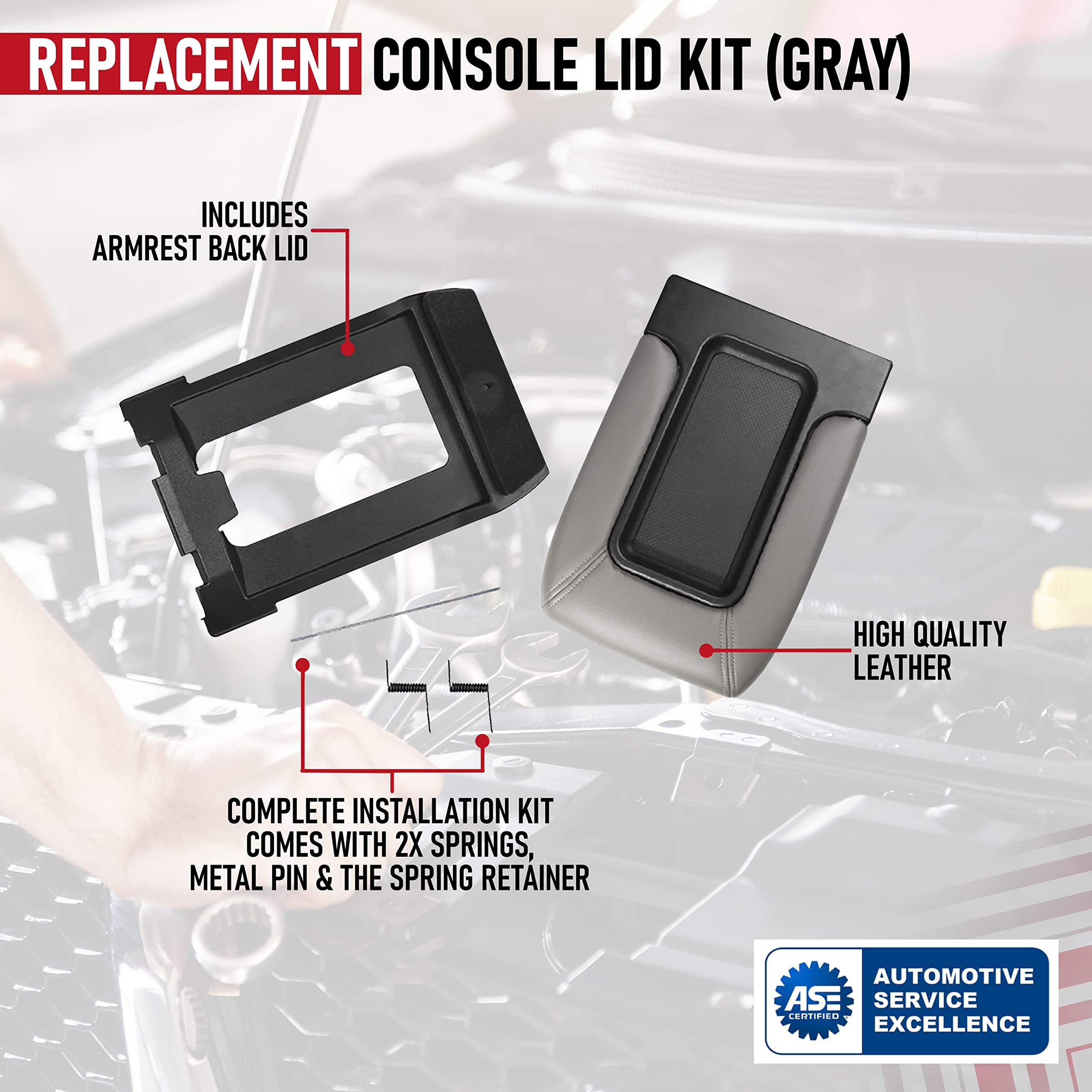 Este kit de reemplazo de tapa de consola central gris está diseñado específicamente para vehículos Chevrolet, GMC y Cadillac. Incluye una bisagra duradera, proporcionando un reemplazo resistente para tapas de reposabrazos de fábrica rotas o agrietadas comúnmente encontradas en camionetas como Silverado, Avalanche, Tahoe, Suburban y Sierra. Fabricado por AA Ignition, garantiza un ajuste perfecto y funcionalidad. Compatible con una variedad de vehículos que incluyen 2002-2006 Escalade, Escalade EXT, 2002-2006 Avalanche 1500, 2500, 2001-2006 Silverado 1500, 1500 HD, 2500 HD, 3500, 2007 modelos Silverado Clásico, 2001-2006 Suburban 1500, 2500, 2001-2006 Tahoe, 2001-2006 Sierra 1500, 1500 HD, 2500 HD, 3500, 2007 modelos Sierra Clásico, 2001-2006 Yukon, Yukon XL 1500, 2500, y más. Reemplazando los números de pieza 924-811, 19127364, 19127365, 19127366, 924-812, 924-813, este kit de reposabrazos de consola central es un reemplazo directo, garantizando facilidad de instalación y compatibilidad. Se ajusta perfectamente entre los asientos del conductor y el pasajero, ofreciendo una alternativa fiable y asequible a las piezas genuinas OEM. Este kit de tapa de consola central está construido con plástico y materiales de alta calidad para una mayor longevidad y se puede instalar sin necesidad de herramientas especiales. Simplemente retire la tapa de consola vieja, instale la bisagra y luego vuelva a colocar la varilla de metal y ya habrá terminado de instalarla en su Silverado, Avalanche, Sierra, Tahoe o Yukon. Este kit de tapa de reposabrazos de consola central viene completo con una garantía de por vida. Si la pieza falla o se rompe en su camioneta o vehículo, simplemente contáctenos para obtener un reemplazo. Ahorre cientos de dólares en comparación con los precios de los concesionarios al comprar esta pieza e instalarla usted mismo y aproveche nuestra garantía de satisfacción. Visite nuestro sitio web para obtener más detalles.