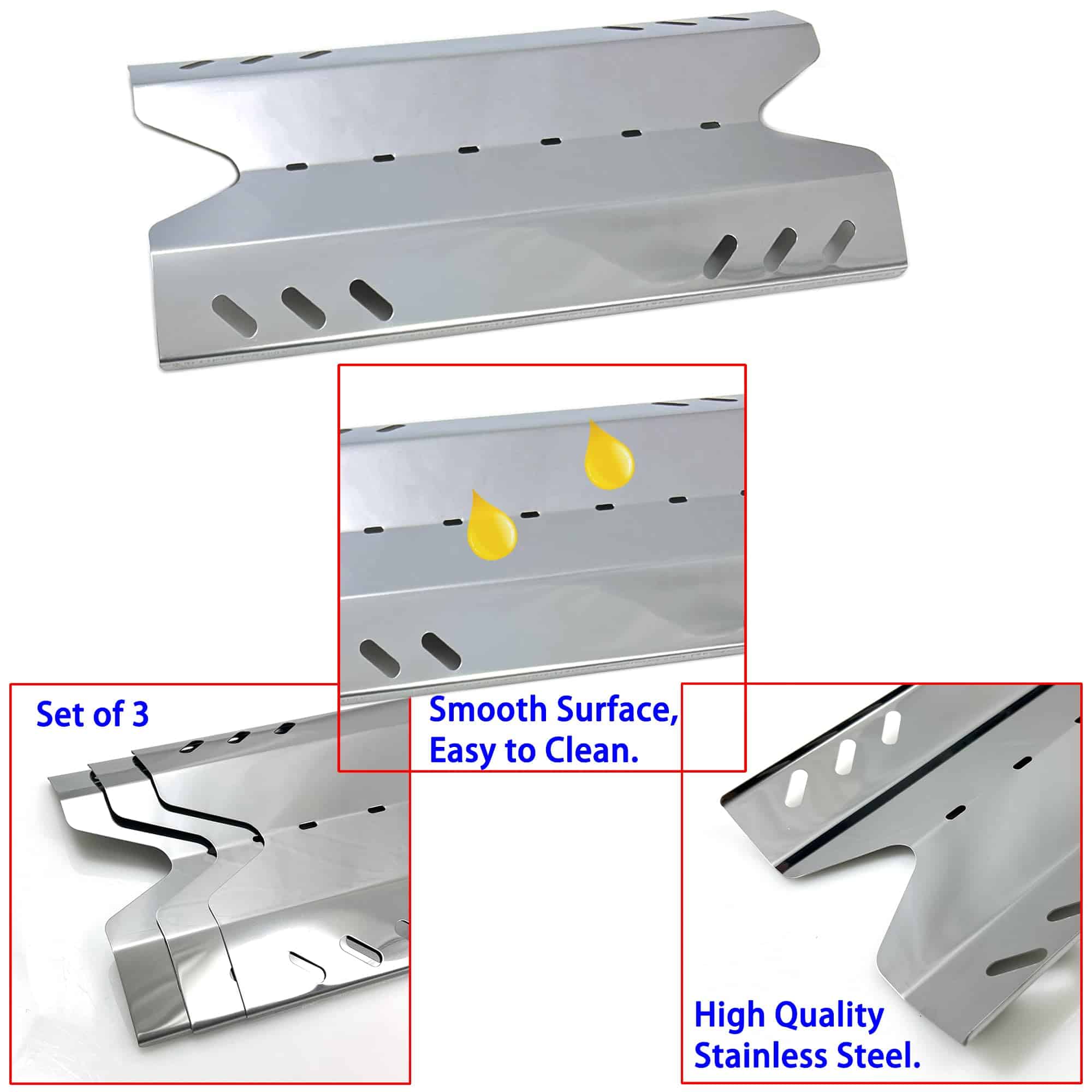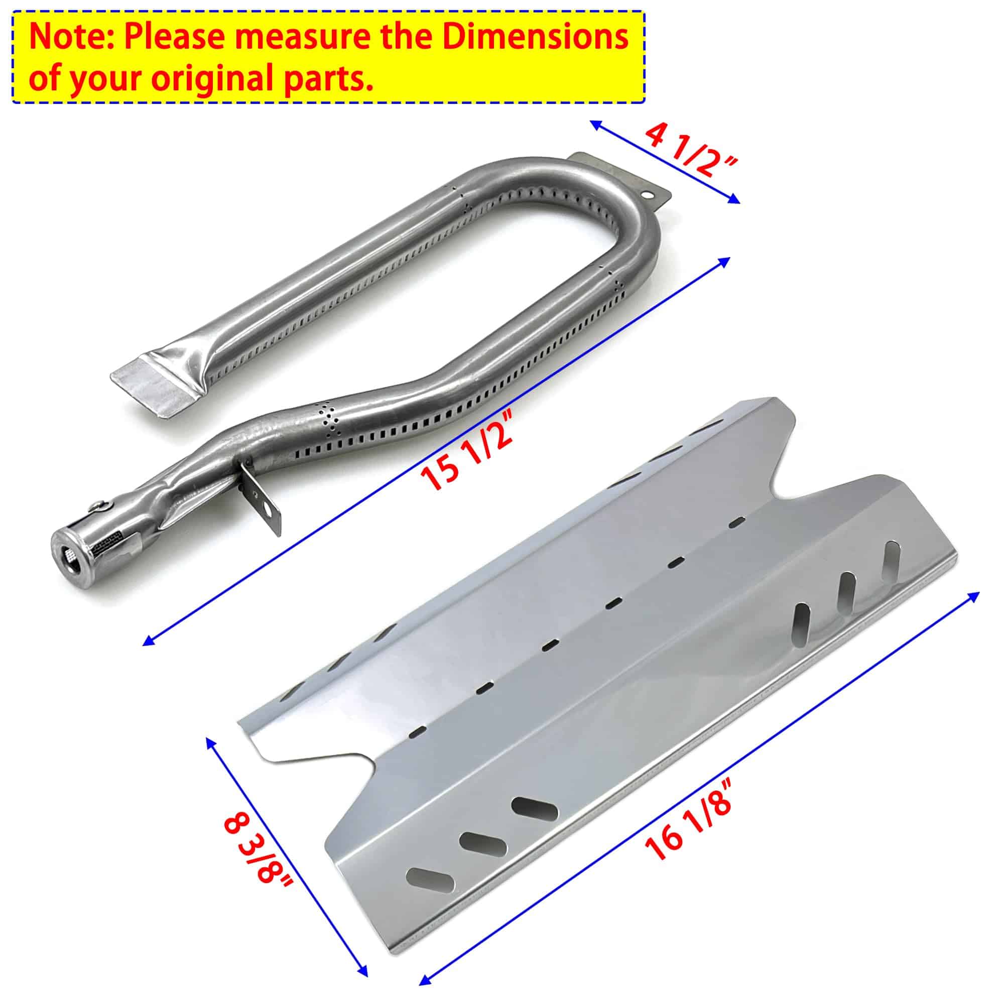 Kit de Reemplazo Directo DG187 para Parrillas de Gas Members Mark BQ05046-6, BBQ Pro BQ05041-28, BQ51009, Sam’s Club, Outdoor Gourmet BQ05037-2, BQ05046-6A; Incluye 3 quemadores de acero inoxidable y 3 placas de calor de acero inoxidable. Dimensiones del quemador: 15 1/2″ x 4 1/2″; Material del quemador: Acero Inoxidable; Dimensiones de la placa de calor: 16 1/8″ x 8 5/8″; Material de la placa de calor: Acero Inoxidable; Reemplaza modelos de parrillas de varias marcas como Outdoor Gourmet, Sam’s Club, Members Mark, BBQ Pro, Kenmore, entre otros.