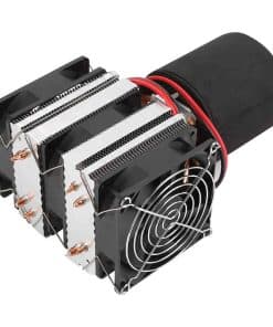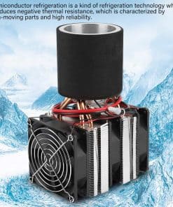 Kit de refrigeración de sistema de enfriamiento semiconductor de 12V CC para bebidas refrigeradas, enfriamiento termoeléctrico Peltier con placa de aluminio. Es una tecnología de refrigeración que produce una temperatura negativa y una fuerte practicidad. Este kit de enfriador semiconductor DIY adopta una placa de aluminio de alta calidad, que garantiza un buen efecto de enfriamiento con una velocidad rápida. Ideal para usar en muestras de enseñanza escolar, pruebas de enfriamiento líquido, haciendo hielo en bebidas en los dormitorios de los estudiantes, o utilizar una batería para suministrar bebidas refrigeradas al pescar al aire libre. Operación fácil sin necesidad de refrigerante.