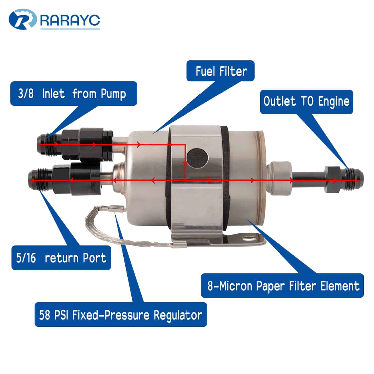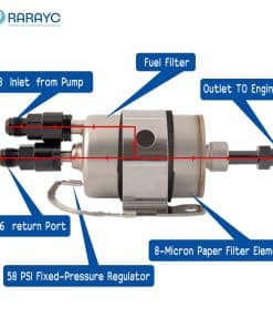 1. Incluye: 1 bomba de combustible en línea GSL392, 1 regulador de filtro de combustible LS, 1 adaptador de 3/8» para entrada, 1 adaptador de 5/16» para retorno, 2 adaptadores macho 6AN a macho 3/8 para salida.
