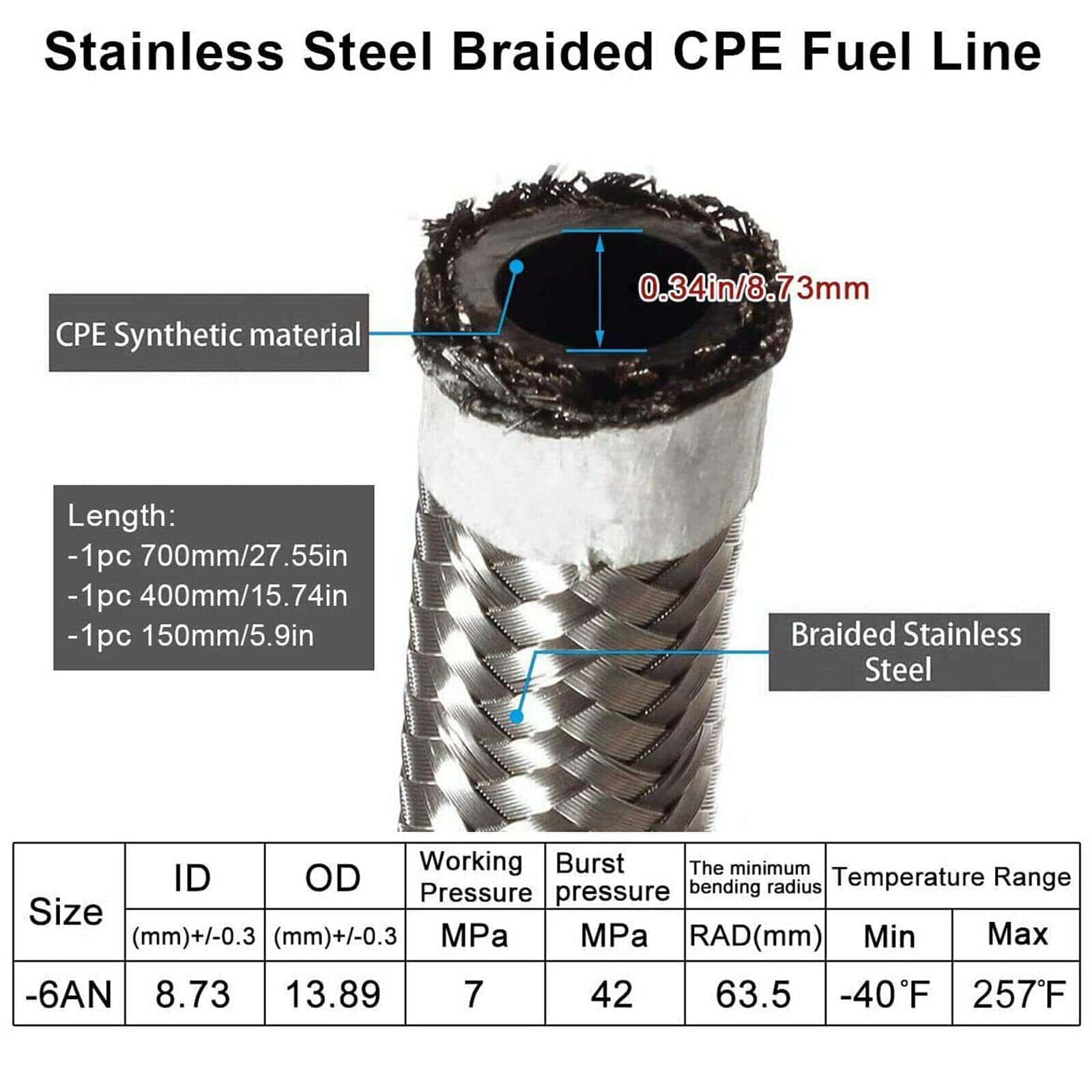1. Función: El regulador de presión de combustible es un componente necesario de cualquier sistema EFI. Regula la presión de combustible que fluye a través del sistema y mantiene una presión de combustible constante para que el inyector de combustible pueda mantener la relación ideal de combustible y refuerzo. 2. Característica: Viene con un manómetro de 1-3/4» | 45mm y puerto de manómetro de 1/8» NPT, ajustable de 0 a 100 psi a la capacidad máxima de la bomba de combustible, y puertos de entrada de 6AN y puerto de retorno. 3. Material: Basado en materiales premium de acero inoxidable y aleación de aluminio T7 y nylon, seguro, liviano y portátil. 4. Aplicación: Este regulador de presión de combustible tiene una gran versatilidad. Se adapta universalmente a la mayoría de los sistemas EFI de automóviles. 5. Incluido en el paquete: Regulador de presión de combustible x1, manómetro lleno de líquido x1, accesorios AN-6 x7, líneas trenzadas x3 (Otros accesorios según las imágenes mostradas).