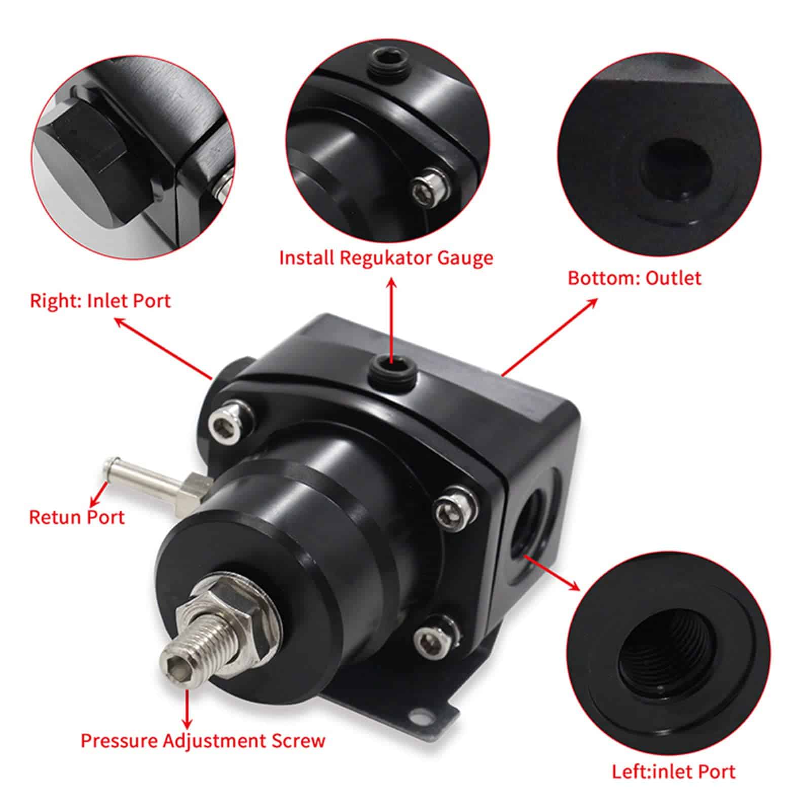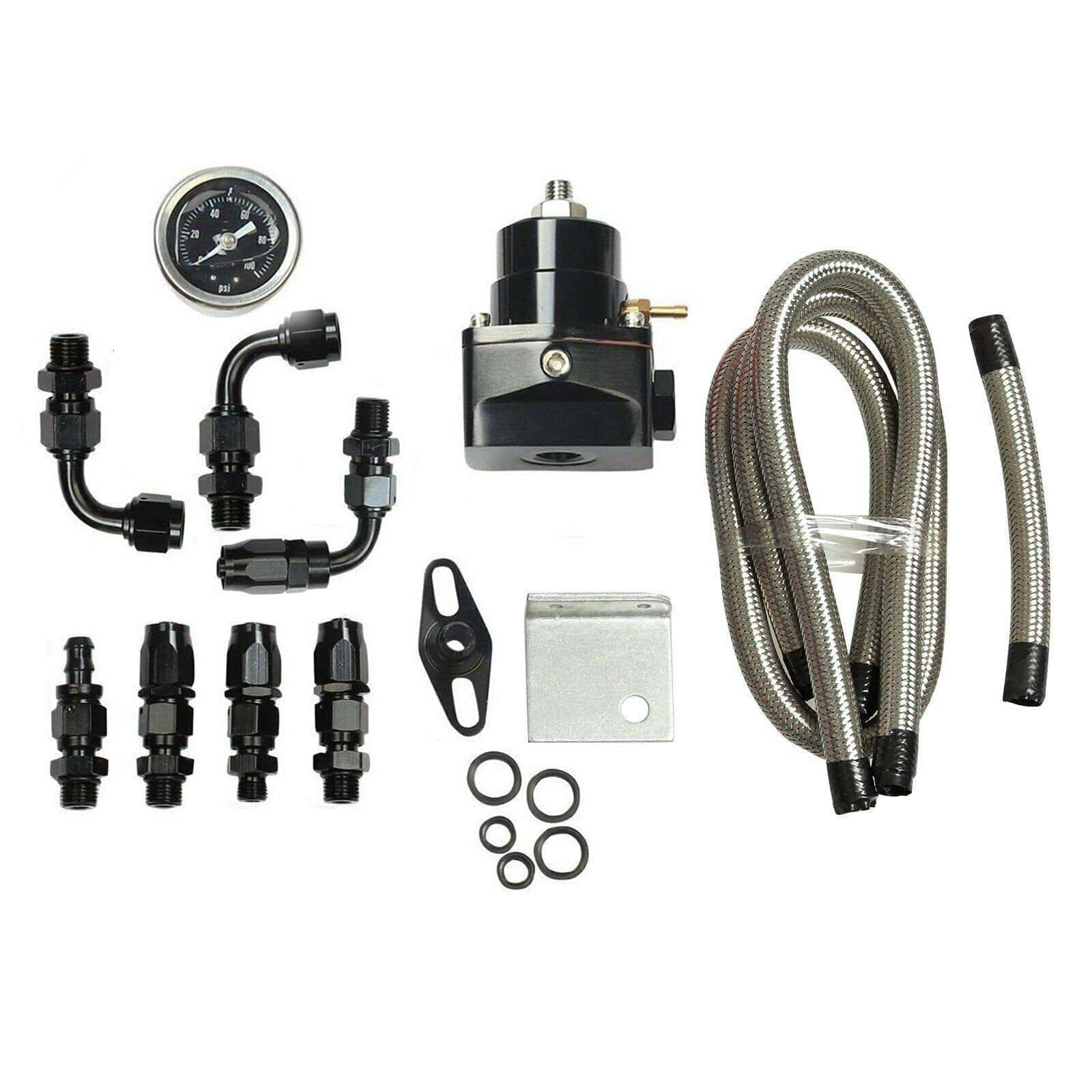 El regulador de presión de combustible Aikosin es ajustable de 0 a 100 psi para adaptarse a la capacidad máxima de la bomba de combustible. Fabricado con materiales premium de acero inoxidable y aleación de aluminio T7, es seguro, ligero y portátil. Compatible con la mayoría de los sistemas EFI de automóviles. El kit incluye: regulador de presión de combustible x1, medidor de líquido x1, accesorios AN-6 x7, líneas trenzadas x3 (Otros accesorios según las imágenes mostradas).