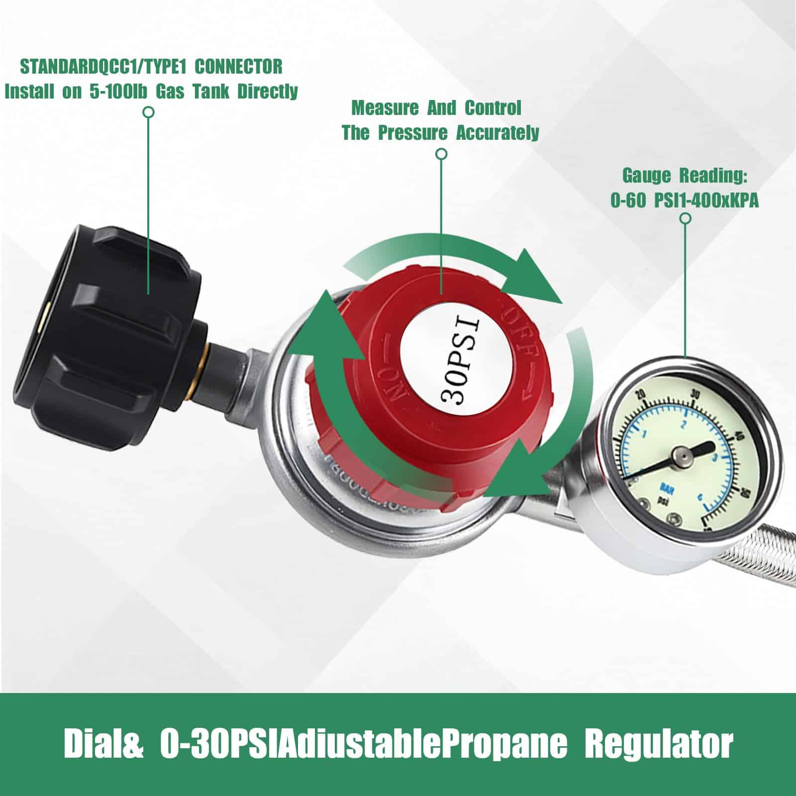 Kit de regulador y manguera de propano XKCY 5FT (0-30 PSI