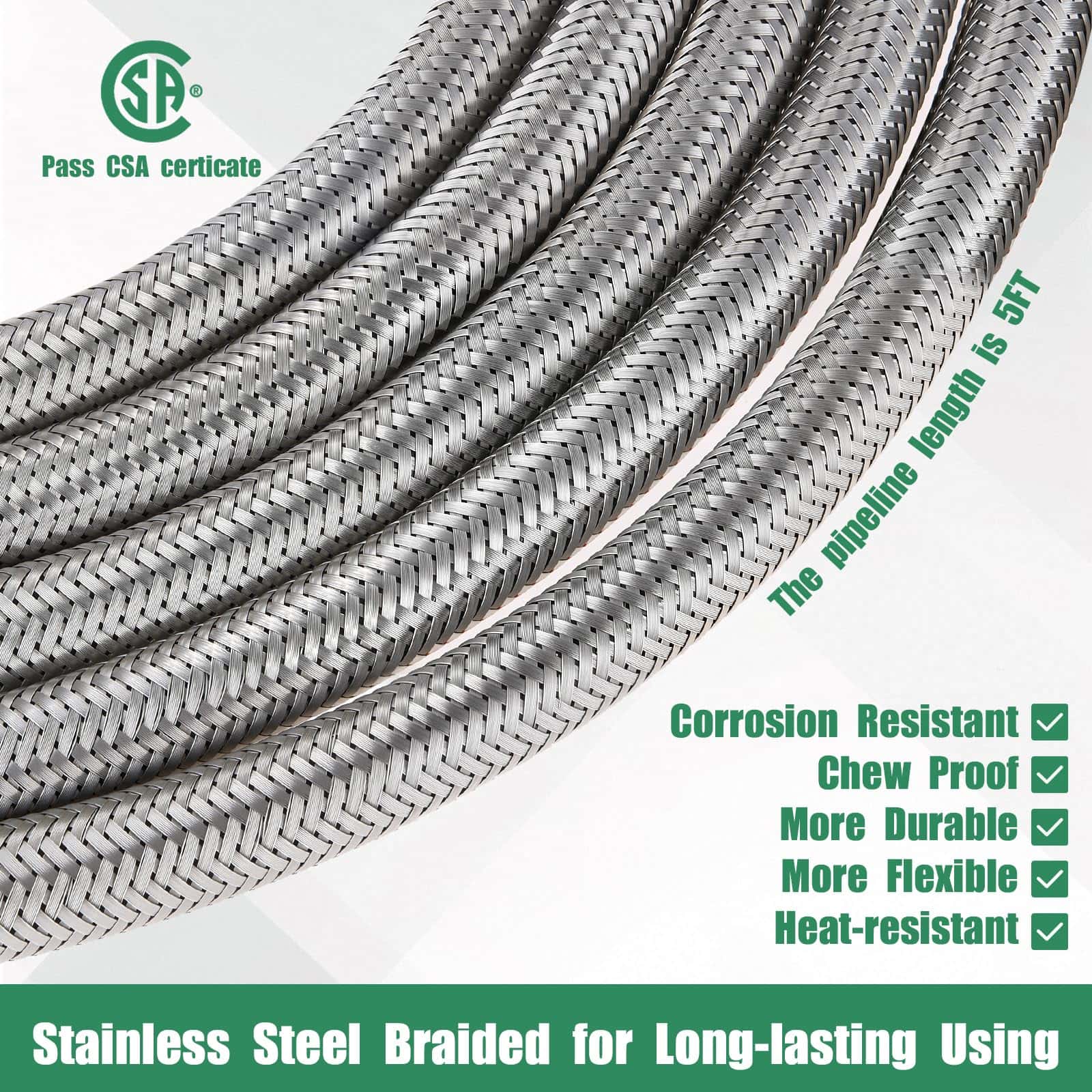 Seguridad primero: Triple certificado (producto certificado por AGA) con garantía a prueba de fugas. Resistente a entornos severos: Funciona de -20 F a 60 F. Solución universal: La longitud de 5FT permite desde BBQ en el patio trasero hasta montajes industriales.