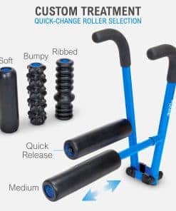 2. ALIVIO MÁS RÁPIDO Y FÁCIL – Ruede mientras está de pie o sentado cómodamente en lugar de estar incómodo acostado sobre un rodillo de espuma tradicional. Los rodillos duales masajean fácilmente áreas difíciles de alcanzar como el muslo interno, mientras alivian simultáneamente las bandas IT apretadas.
