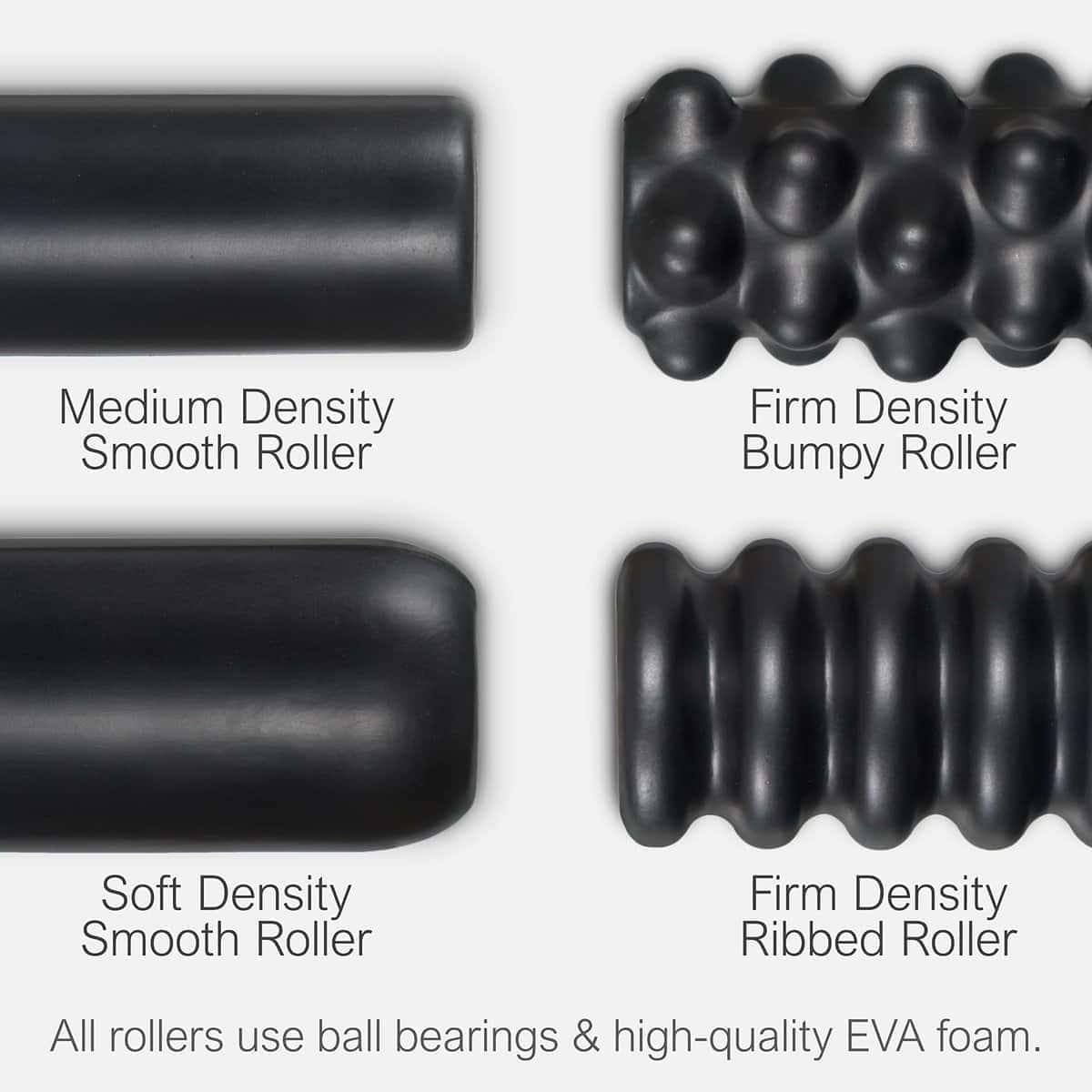 4. PERSONALIZA EL TRATAMIENTO AL INSTANTE – El exclusivo sistema de liberación rápida del rodillo te permite cambiar entre densidades de espuma EVA y contornos que imitan una variedad de técnicas de terapia deportiva. El Kit de Rendimiento incluye 5 rodillos.