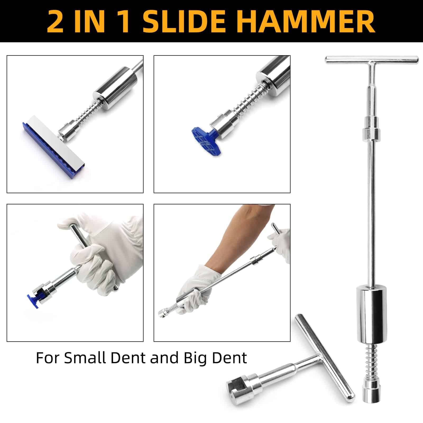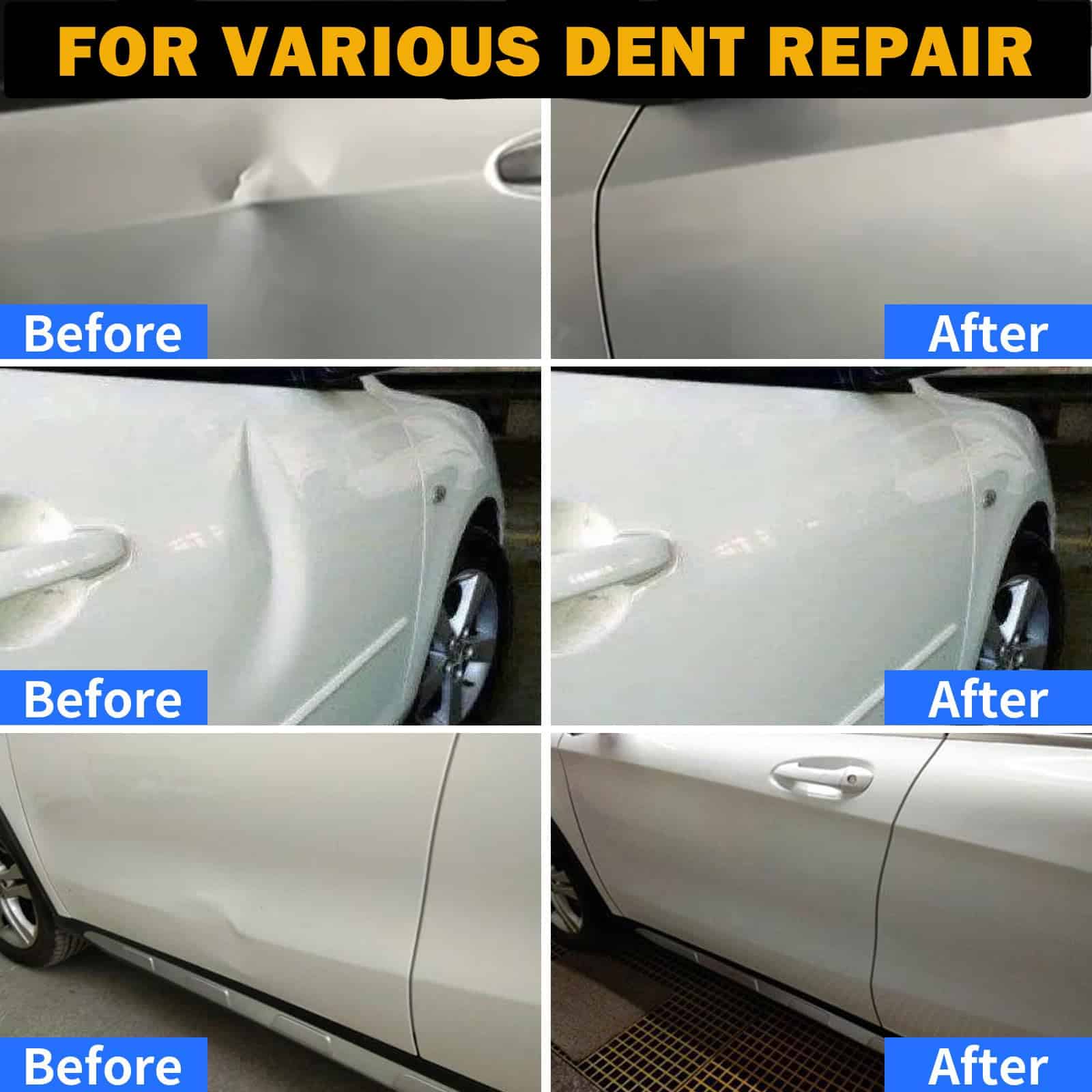 4. AMPLIAMENTE UTILIZADO: Adecuado para cualquier abolladura de auto, reparación de abolladuras en puertas y daños por granizo y otras abolladuras. Acción eficiente en automóviles, refrigeradores, lavadoras y otras superficies metálicas abolladas.