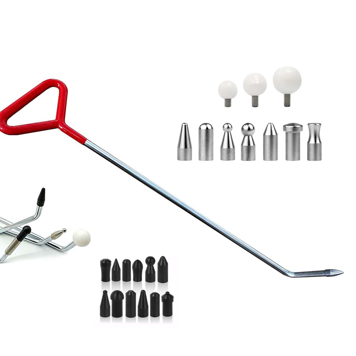 Kit de varillas para reparación de abolladuras LadyRosian con mango de goma cómodo, varillas de acero inoxidable son más firmes que las varillas normales, no es fácil de doblar ni oxidar, y la parte del mango está hecha de goma, mango cómodo para un servicio prolongado. Las varillas para la reparación de abolladuras son muy utilizadas para la reparación de abolladuras de coches y otras placas de metal, efectivas para reparar abolladuras grandes. Este kit de varillas puede reparar abolladuras, ahorrando tiempo y dinero. Las varillas recién diseñadas están fabricadas en acero inoxidable, son duraderas y resistentes a la corrosión, y fáciles de almacenar.