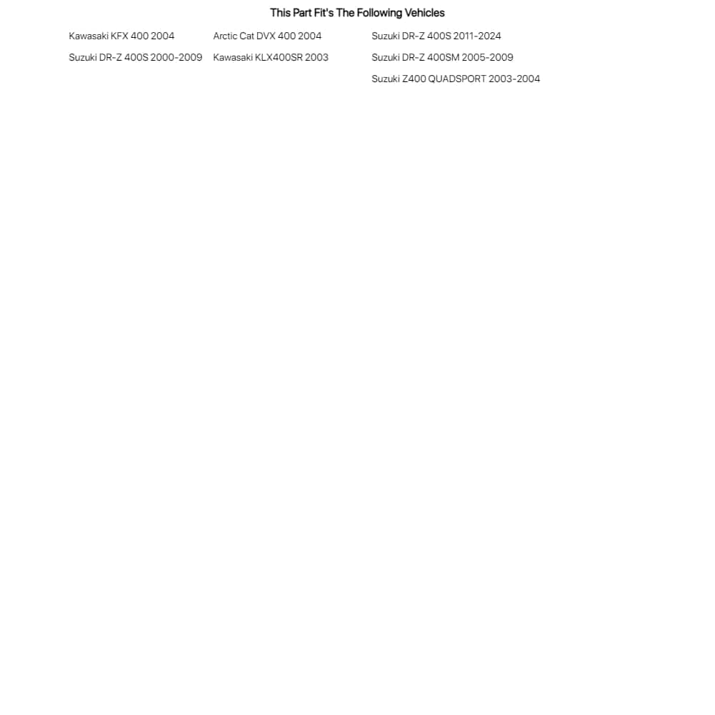 El Kit de Reparación de Bomba de Agua Tusk facilita la reconstrucción de la bomba de agua de su motocicleta o ATV vieja, desgastada o con fugas para garantizar un rendimiento óptimo. Compatible con: Arctic Cat DVX 400 2004 — Kawasaki KFX 400 2004 — KLX400 SR 2003 — Suzuki Z400 Quadsport 2003-2004 — DR-Z 400S 2000-2022 — DR-Z 400 SM 2005-2009