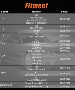 4. Compatibilidad : Para BMW E46 1999-2005 E39 1997-2003 E38 1995-2001, E83 X3 2004-2010, E53 X5 2000-2006, E85 E86 Z4, Mini R50 R52 R53, Land Rover L322.