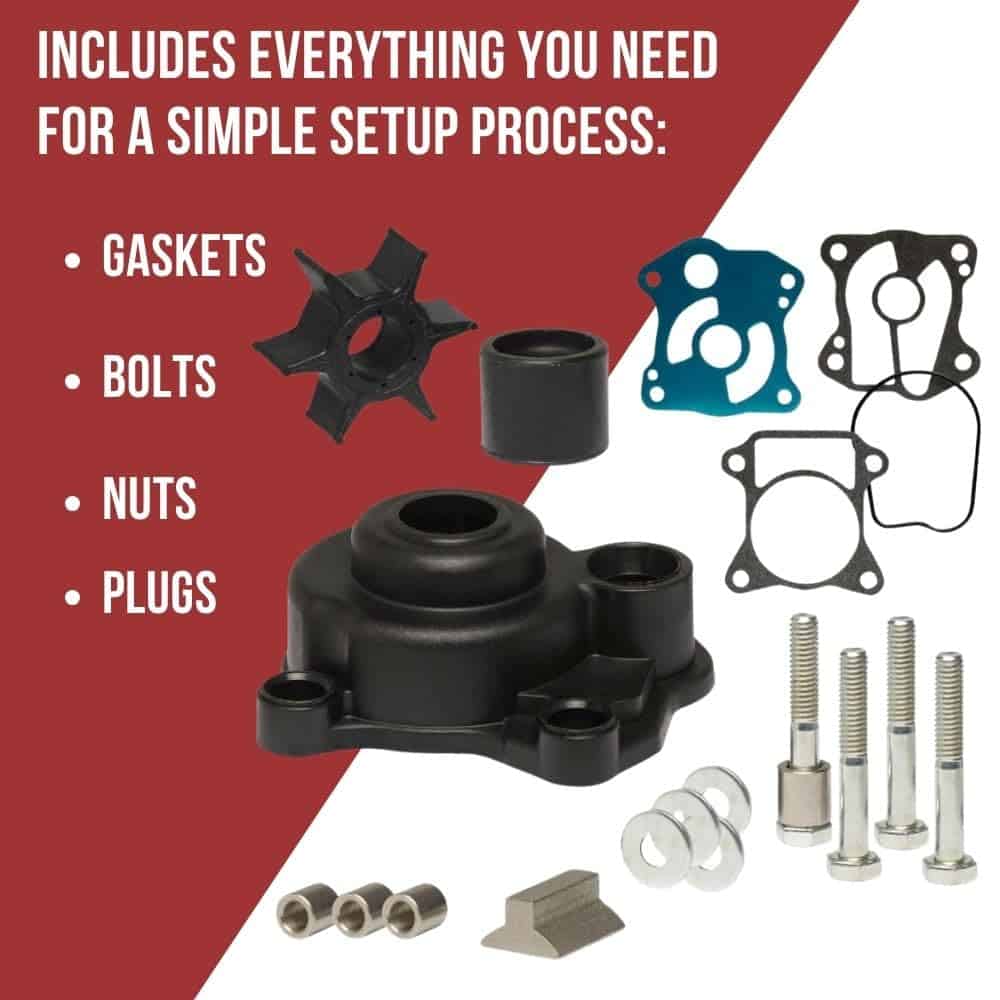 Kit de reparación de impulsor de bomba de agua de repuesto para motores fuera de borda de 4 tiempos. Este kit está diseñado para reemplazar los números de parte 06193-ZV5-010, 06193-ZV5-020 y proporciona todos los elementos necesarios para reparar o reconstruir la bomba de agua en motores fuera de borda de los modelos BF40A BF40D BF50A BF50D. Compatible con Honda, este kit es una solución efectiva y económica para mantener su motor en óptimas condiciones de funcionamiento. Ya sea para mantenimiento preventivo o reparaciones necesarias, este kit es la elección perfecta para restaurar la funcionalidad de la bomba de agua de su motor fuera de borda.