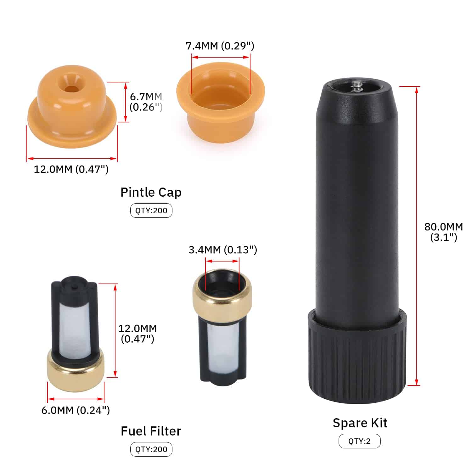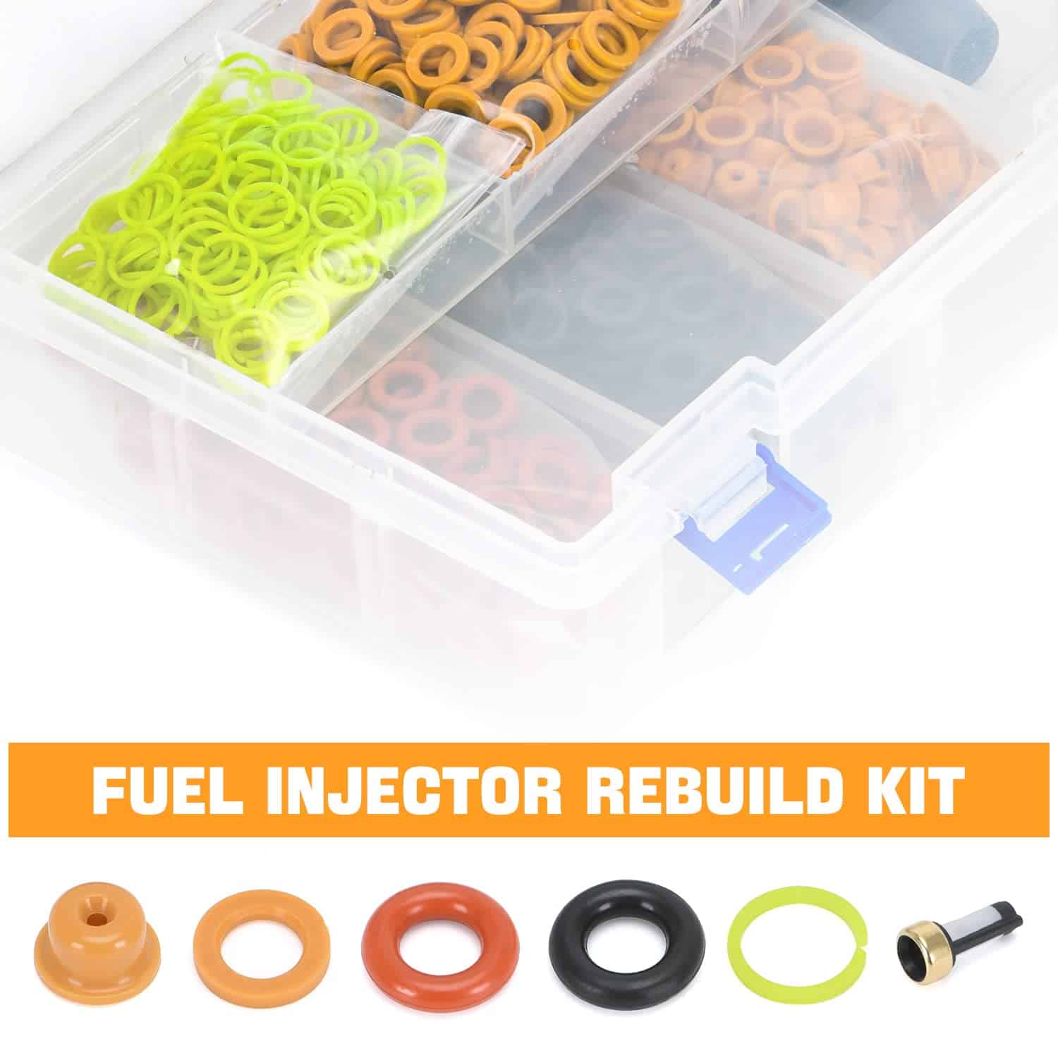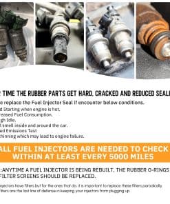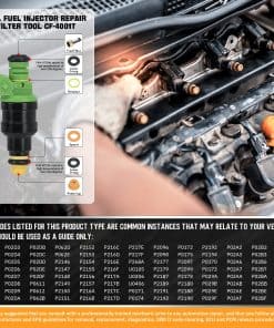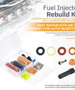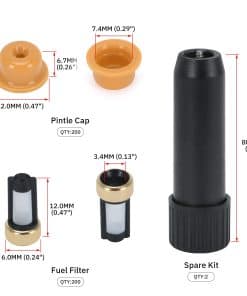 Este kit contiene una herramienta de extracción y 6 tipos de piezas universales de repuesto (filtros, anillos en O, sellos/espaciadores, tapas de pincel) que se aplican a la mayoría de los inyectores comúnmente utilizados.
