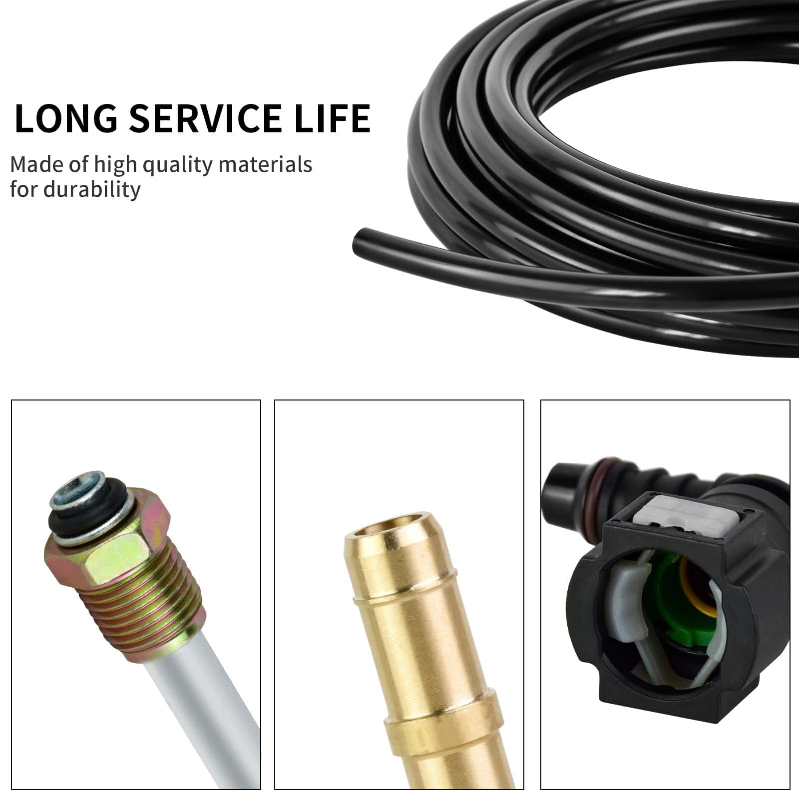 3. LÍNEA DE COMBUSTIBLE PREMIUM – La línea de combustible de nylon de 3/8 de Mupera está construida con material de nylon premium para una resistencia superior a la corrosión, abrasión y calor. La línea de combustible de nylon garantiza una protección duradera para su vehículo.