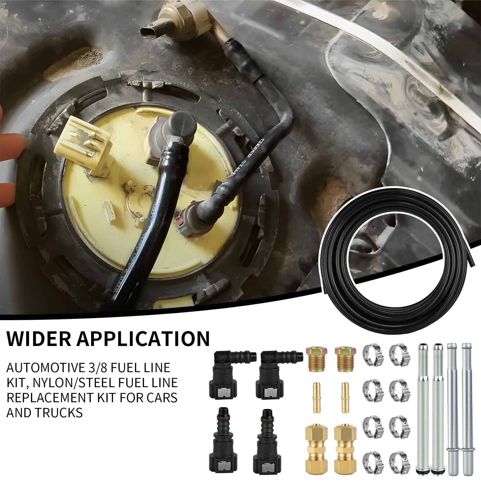 2. AJUSTE EXACTO – Este kit de reparación de línea de combustible de nylon es compatible con líneas de combustible de nylon de 3/8 e incluye una variedad de desconexiones rápidas y accesorios de compresión. El kit de línea de combustible incluido garantiza un ajuste perfecto para su vehículo y una fácil instalación.