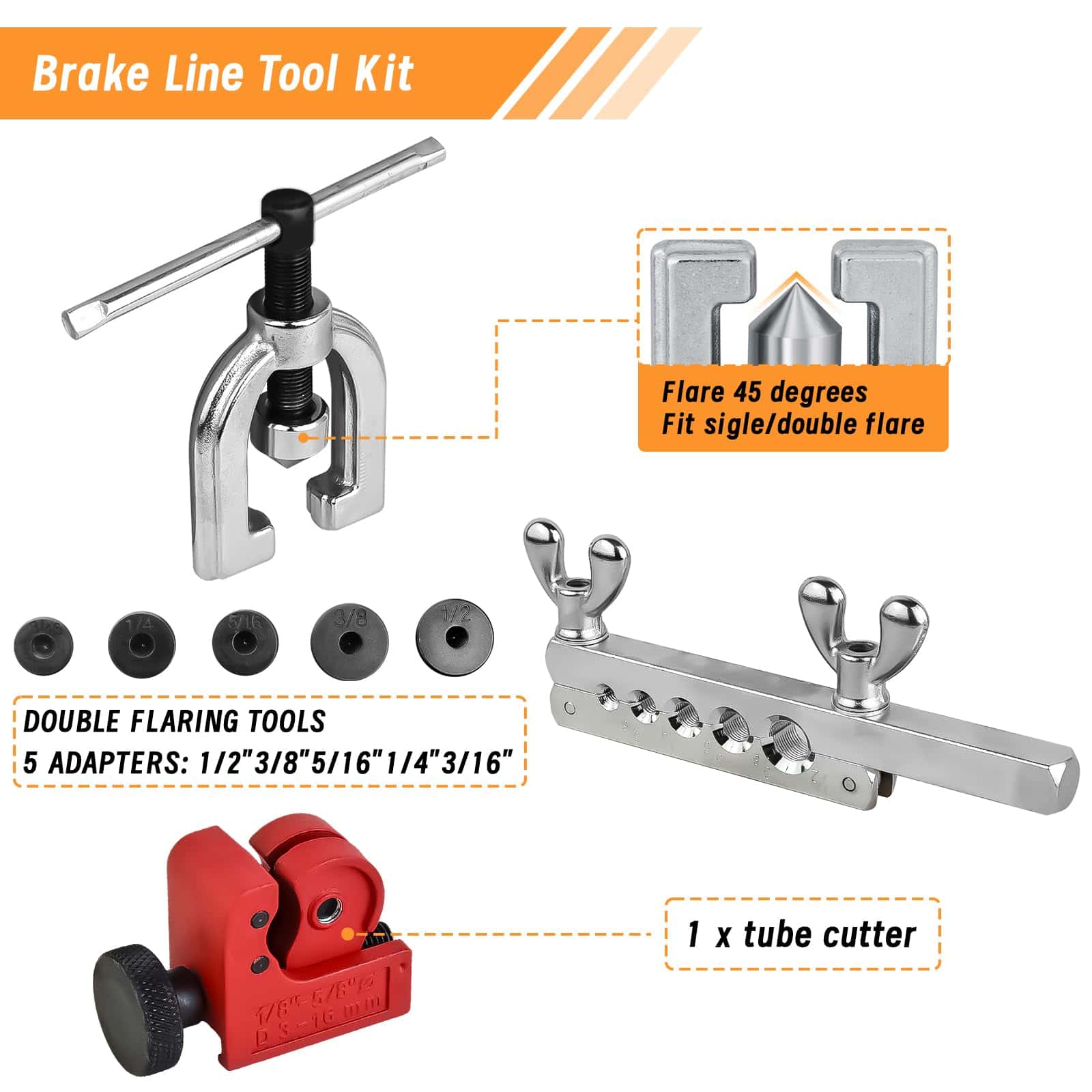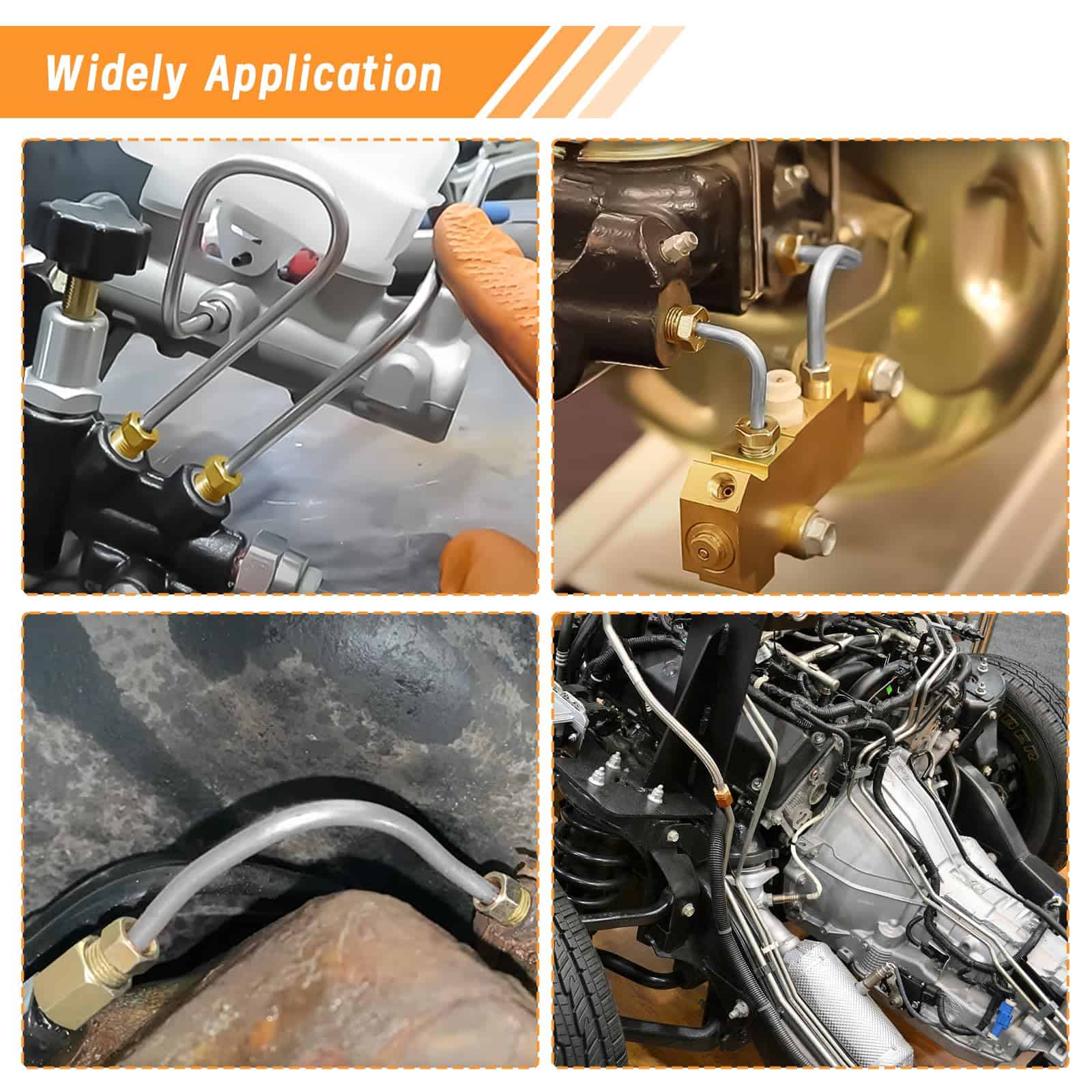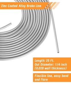 El kit de línea de freno de 1/4 de MuHize puede ser doblado fácilmente a mano y flaring con herramientas simples. Todos los accesorios de línea de freno están hechos de latón duradero para prevenir la oxidación y chapados para resistencia a la corrosión. La herramienta de flaring doble y simple de MuHize con 5 adaptadores se puede utilizar para diferentes tamaños (3/16″, 1/4″, 5/16″, 3/8″ y 1/2″) de tuberías, cubriendo las necesidades de la mayoría de los tamaños de tuberías. La línea de acero de aleación recubierta de zinc de 1/4 de MuHize es duradera y mucho mejor que la tubería de acero estándar. Las líneas de freno recubiertas de zinc son ideales para vehículos expuestos a condiciones climáticas y ambientales adversas. La línea de freno de 1/4 de MuHize y los accesorios se ajustan a la mayoría de los sistemas de frenos hidráulicos, sistemas de combustible, sistemas de transmisión, etc. También son ampliamente utilizados en aplicaciones domésticas, industriales y comerciales.