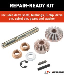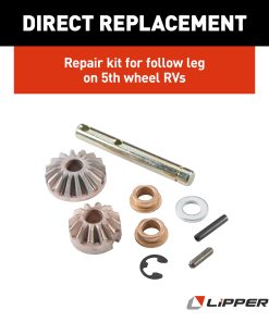 Ponga en funcionamiento su Lippert power landing gear con un kit de reparación para la pierna de seguimiento de su landing gear. Este kit completo viene con todo lo que necesita para reparar su pierna sin gastar una fortuna. Este kit de reparación incluye (1) eje de transmisión de seguimiento (913-01), (2) bujes de eje de transmisión (908-00), (1) clip E (919-00), (1) pasador de transmisión (920-00), (1) pasador spirol (1020-08), (1) engranaje cónico de 12T (909-00), (1) engranaje cónico de 16T (910-00) y (1) arandela de ajuste (907-00). El diseño fácil de hacerlo usted mismo de este kit le ayudará a hacer reparaciones oportunas y sin problemas en el landing gear de su RV, para que pueda volver a acampar en poco tiempo.El Lippert Power Landing Gear es la opción estándar para la mayoría de las 5ta ruedas RV en el mercado hoy en día. Entonces, cuando su equipo necesita ser reparado, ¡lo tenemos cubierto! Desde componentes de reemplazo exactos hasta kits de reparación, tenemos el equipo que necesita para volver a la carretera. Ya sea en la carretera o en el agua, Lippert suministra una amplia variedad de productos premium para RV, remolque y marinos diseñados para mejorar todos sus pasatiempos recreativos. Nuestro equipo está comprometido a pensar siempre en su próximo viaje, empujando las posibilidades de nuestros productos y servicios, todo para mejorar su tiempo al aire libre, siempre que sea, donde sea, durante años. ¿Su Lippert power landing gear necesita una actualización Con nuestros kits de reparación para piernas de seguimiento, puede ahorrar tiempo y dinero evitando llevar su RV al taller para reparar su equipo. En poco tiempo, volverá a disfrutar de todos los beneficios convenientes del landing gear de potencia de su 5ta rueda.