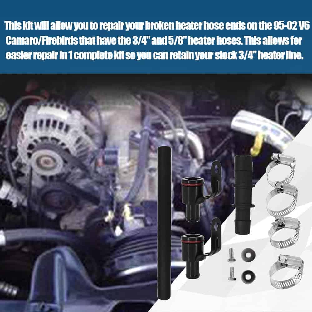 Este Kit de Reparación de Manguera de Calefacción es compatible con Chevy Camaro y Pontiac Firebird 3.8L V6 de los años 1995 a 2002. Ayuda a mejorar la fiabilidad y durabilidad del sistema de calefacción de su vehículo, previniendo fugas de refrigerante y reduciendo el riesgo de sobrecalentamiento del motor y daños asociados. La instalación es sencilla, no se necesitan herramientas especiales y se ahorra tiempo y esfuerzo. Nuestro servicio postventa cuenta con un equipo experimentado de atención al cliente que resolverá sus consultas de forma rápida, junto con técnicos profesionales que brindarán soporte en todo momento para una experiencia de compra sin problemas.