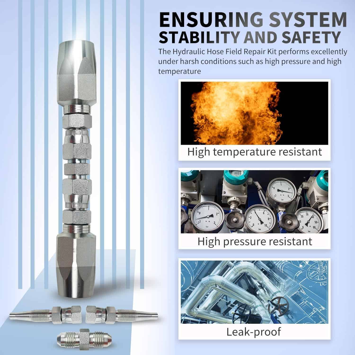 1. Kits de Reparación Reutilizables para Mangueras Hidráulicas de 2 Hilos Trenzados. ¡Salvavidas para reparaciones de emergencia! Perfecto para reparaciones de mangueras hidráulicas en equipos como podadoras de árboles, topadoras, implementos, quitanieves, camiones de remolque, etc., hasta que se pueda instalar una manguera de reemplazo.