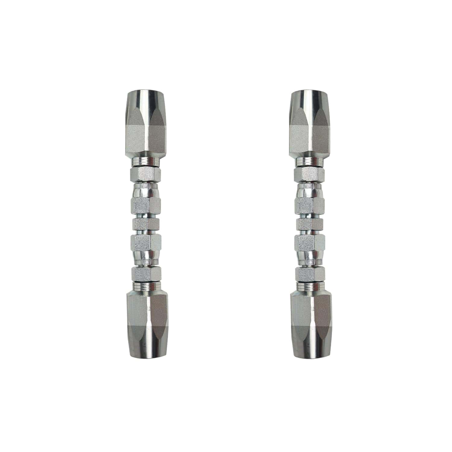 2. Dos Kits de Reparación de Manguera Hidráulica Reutilizable de 1/4″ de 2 Hilos. Utilice con mangueras hidráulicas 100R2AT, R16, R17, R19 de 2 hilos. Tamaño de manguera hidráulica -04 de 1/4 de pulgada de diámetro interno y aproximadamente 0.55 pulgadas de diámetro externo. No compatible con mangueras 100R2 (tipo manguera hidráulica trenzada de acero de 2 hilos solamente).